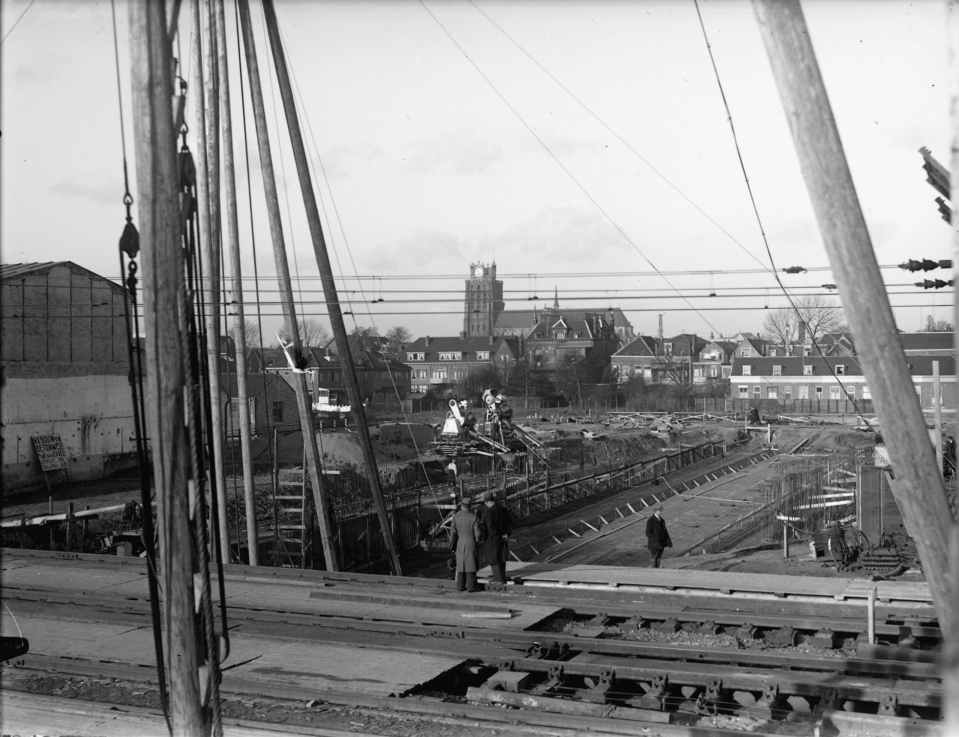 Aanleg van de Krispijntunnel vanaf de spoorbaan richting Kilwijkstraat gezien.