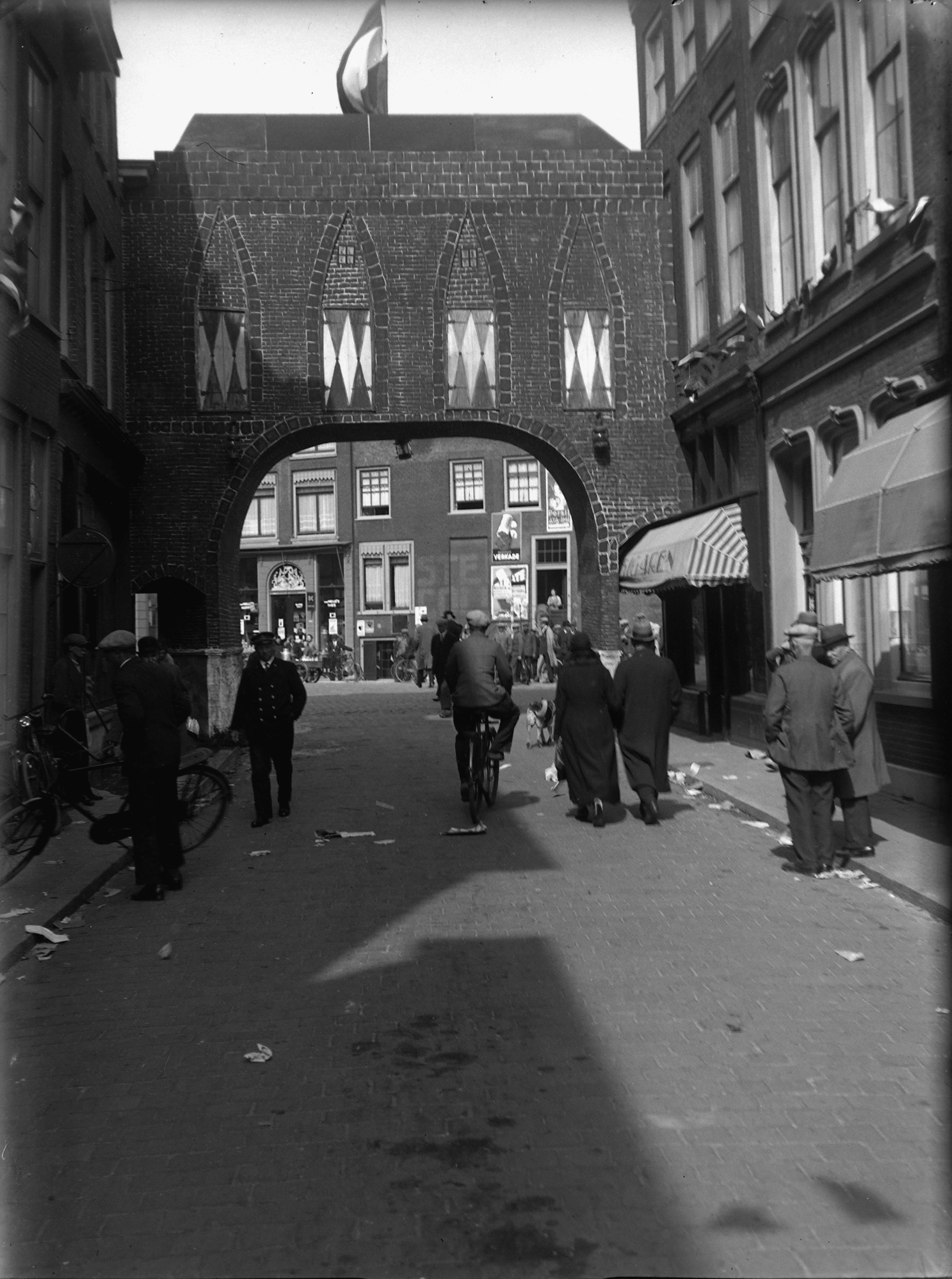 Nabootsing van de Oude Vuilpoort door de winkeliers van Voorstraat West tijdens de …