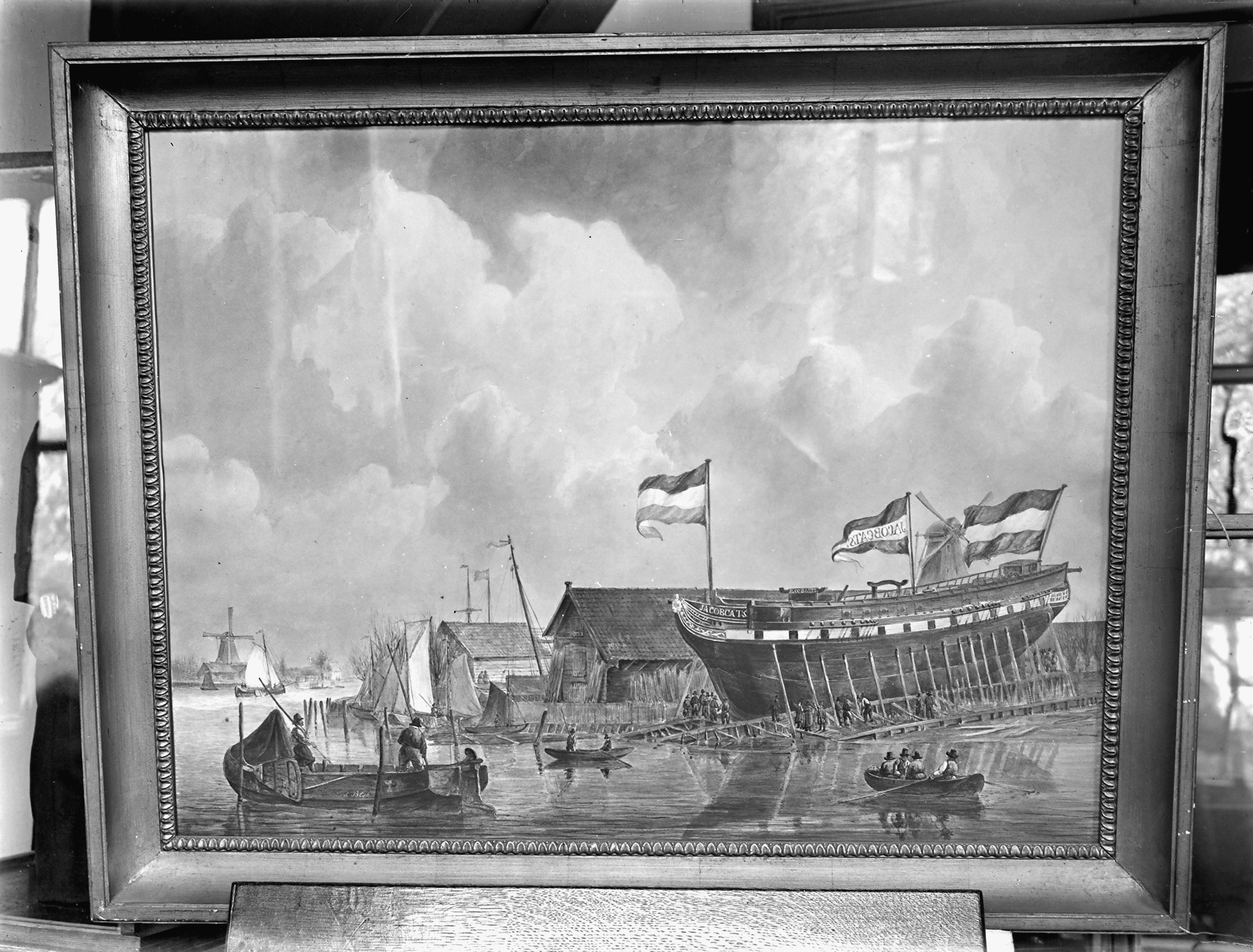 Werf van Gips in de Lijnbaan met het fregatschip "Jacob Cats".