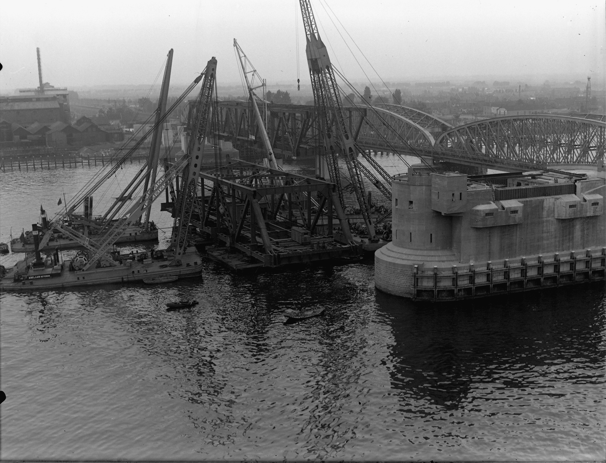 - bruggenbouw drijvende bokken roeiboten spoorbruggen verkeersbruggen