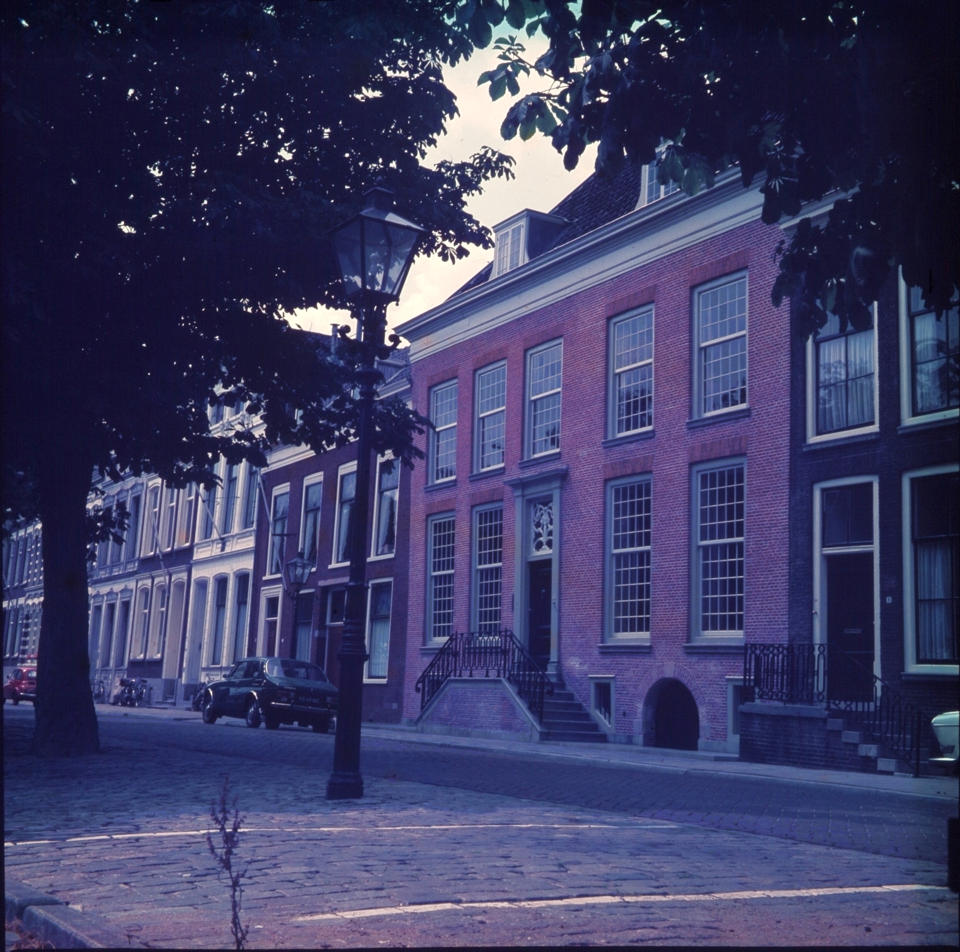 - Koopmanshuizen met trappen aan de voorzijde aan de Wolwevershaven, het grote middelste pand na de restauratie.