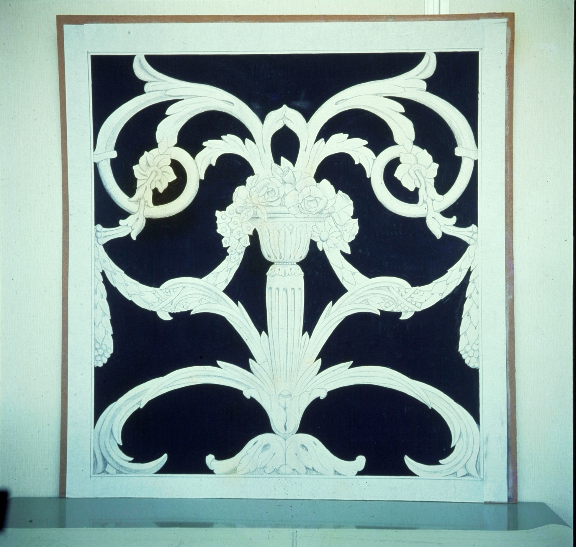 - Ontwerp/tekening van het bovenlicht van een koopmanshuis aan de Wolwevershaven.