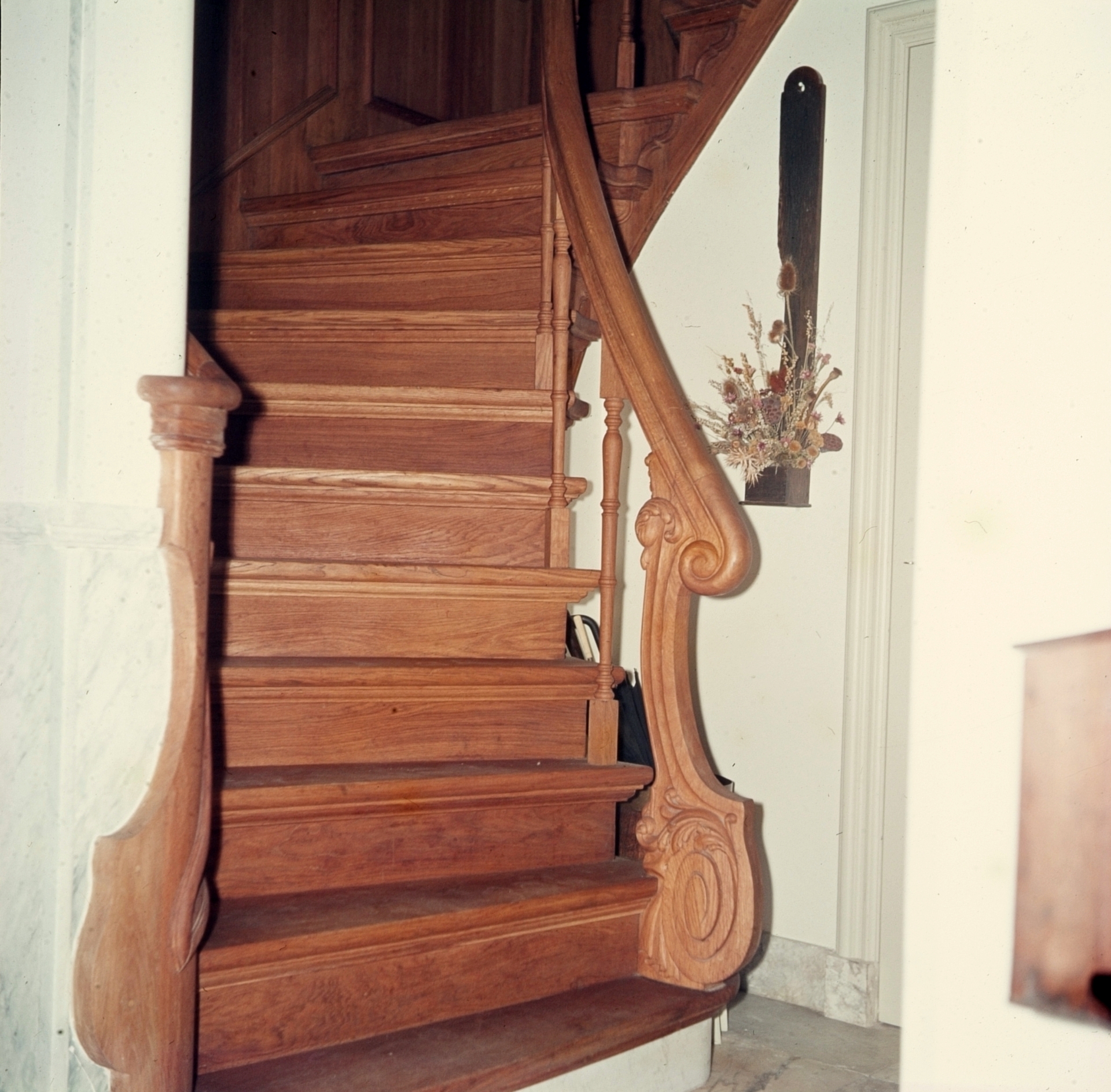 - Een gerestaureerde trap van een huis aan de Wolwevershaven.