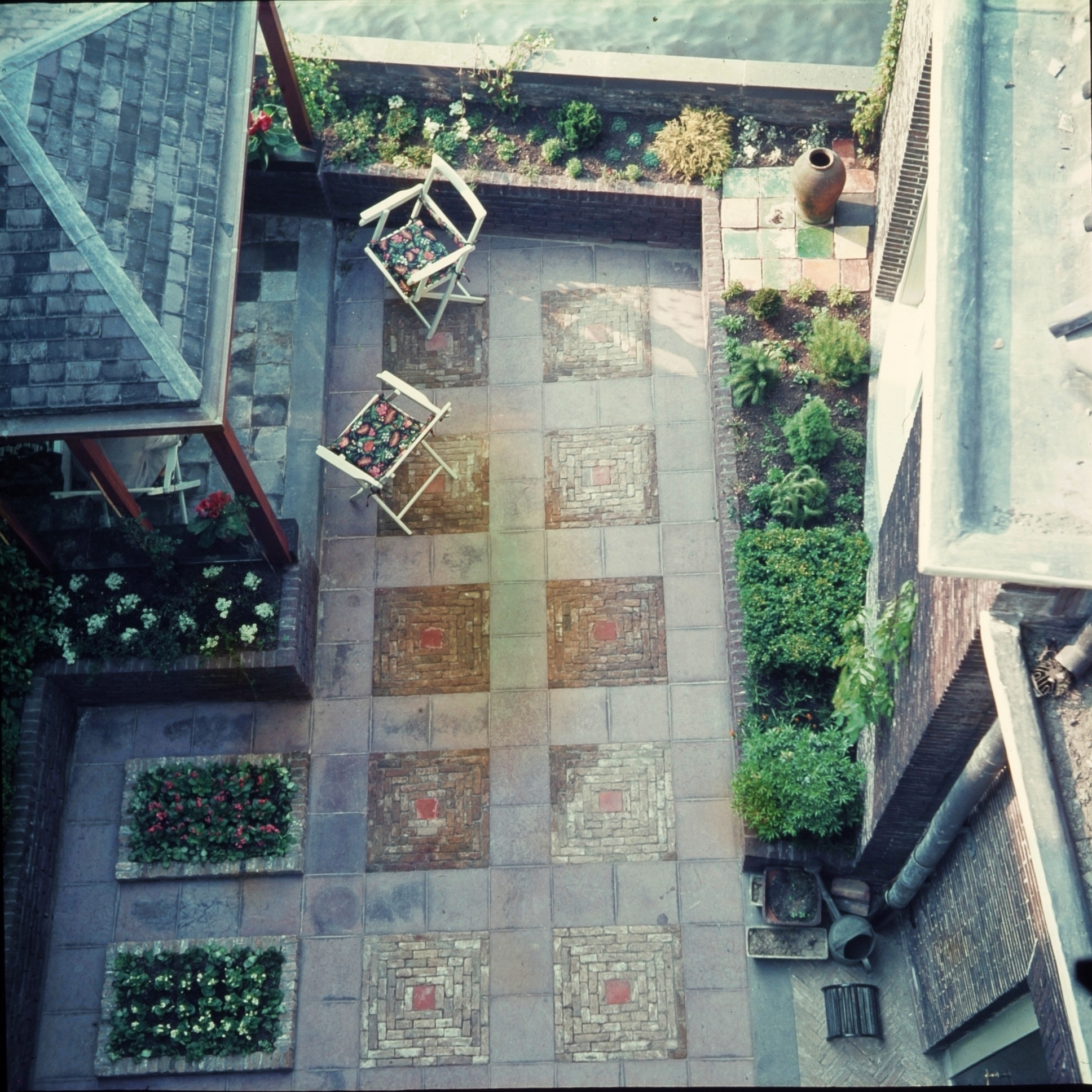 - Terras aan de rivier (Oude Maas), de achterkant van een huis aan de Wolwevershaven.