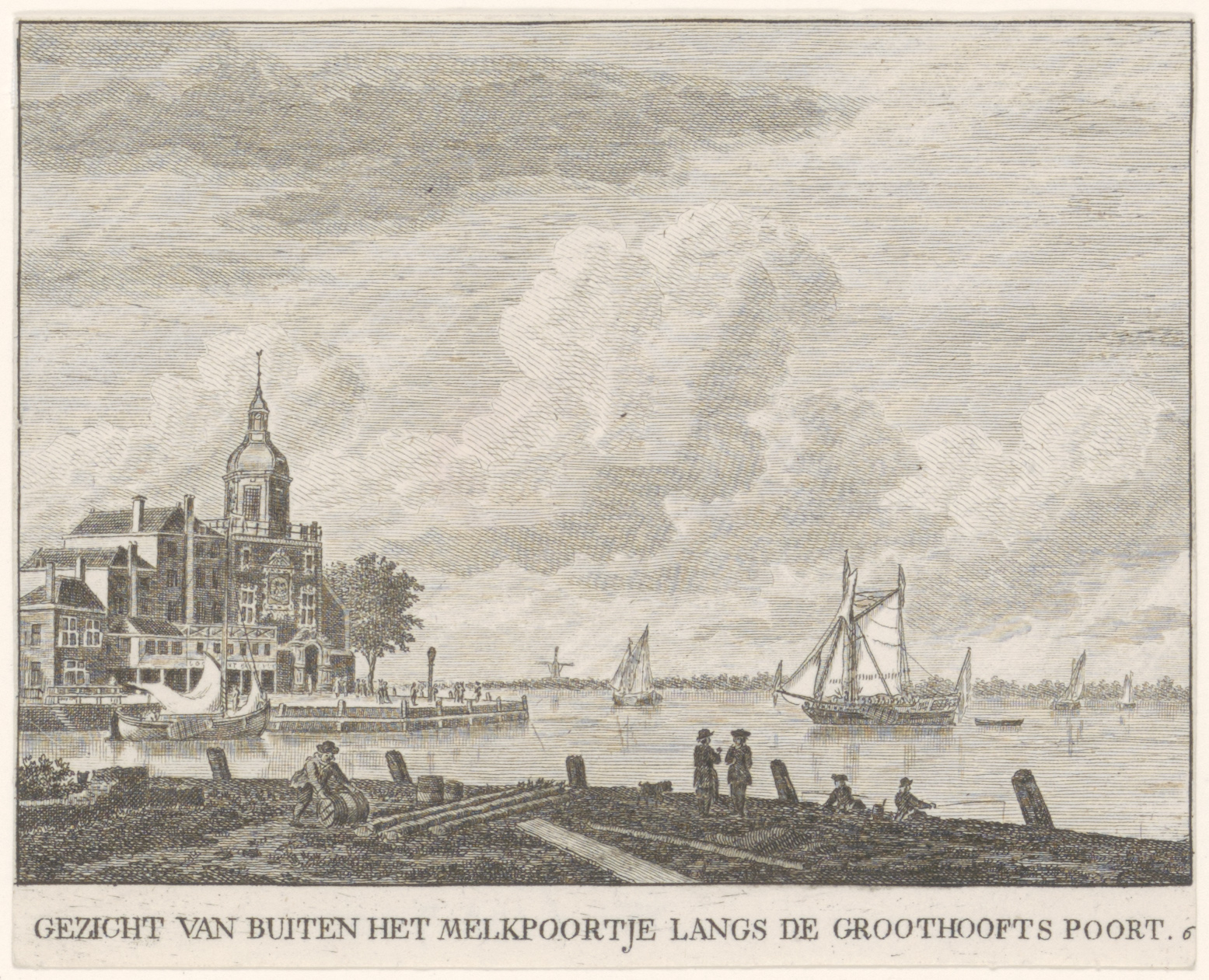 Gezicht van buiten het Melkpoortje langs de Groothoofdspoort.