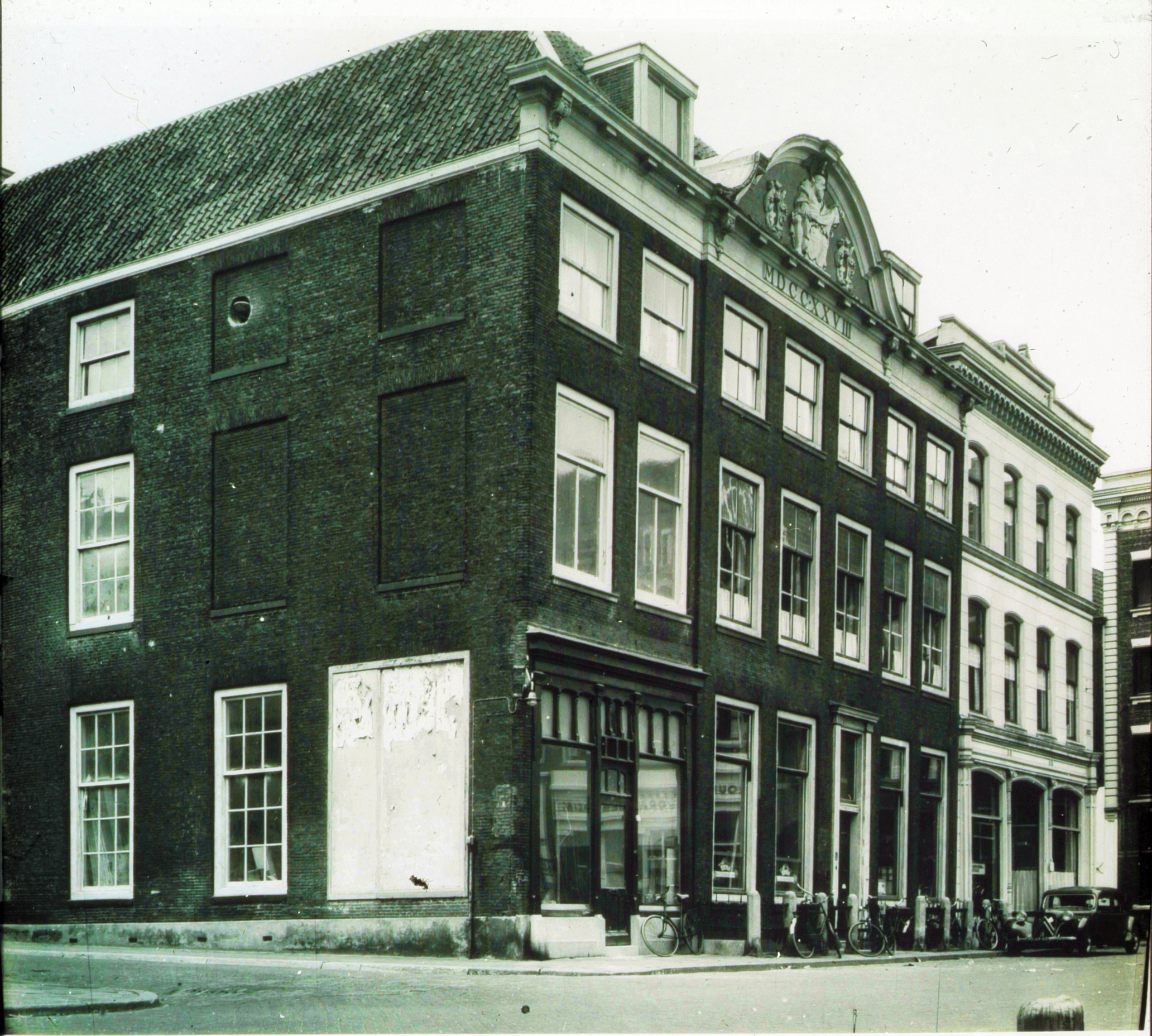 Het huis Chronos, Vader Tijd (nog niet gerestaureerd) aan het Vlak op de hoek van de …
