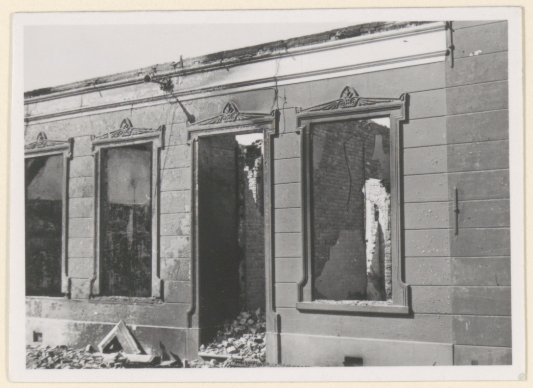 - Verwoestingen door oorlogshandelingen tijdens de meidagen 1940 aan de woning van het hoofd van de christelijke school in de Kerkstraat te Alblasserdam.