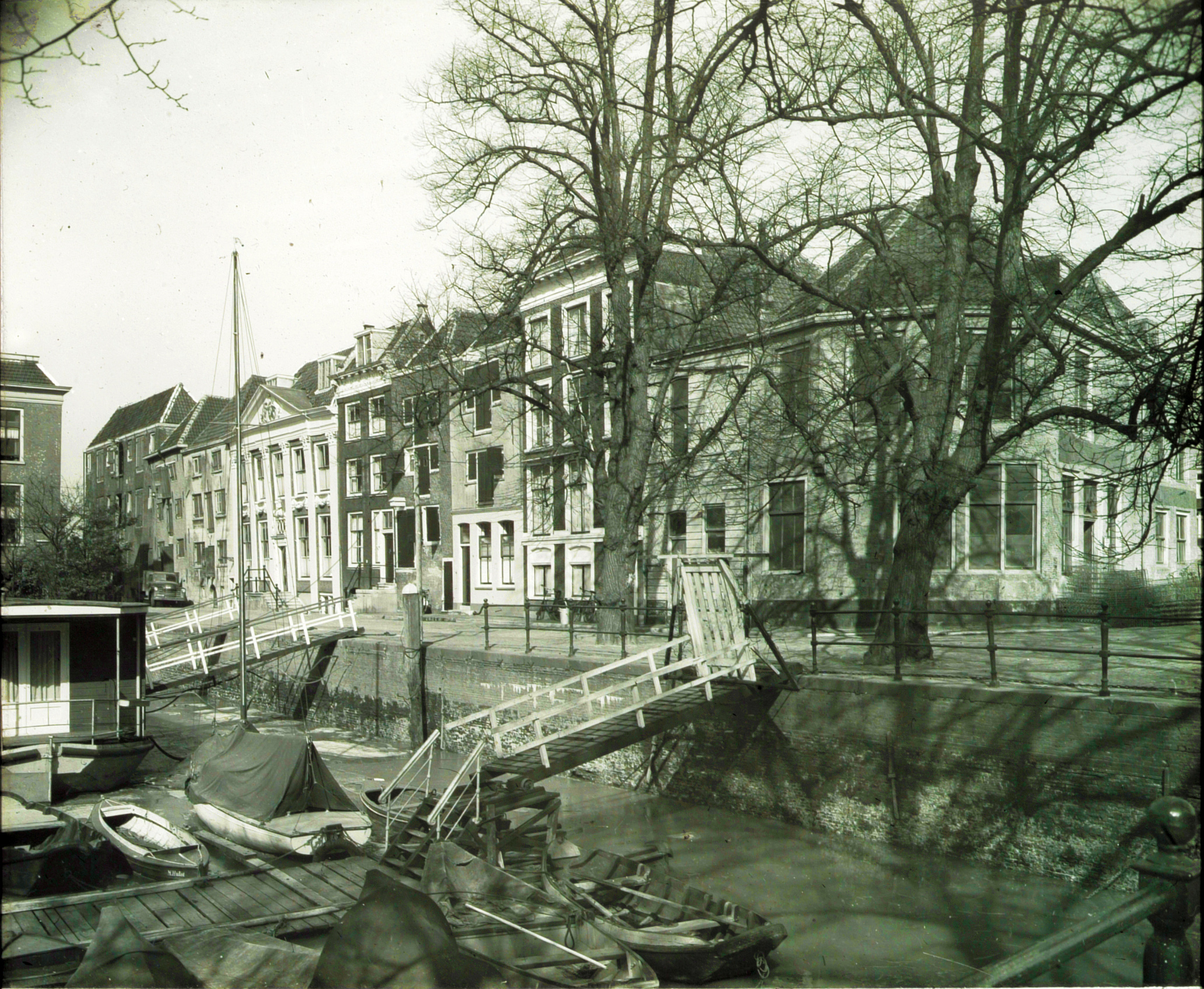 - Het rondeel Engelenburg en de rest van de huizen aan de Korte Engelenburgerkade. De woonboot en roeiboten liggen in het Maartensgat.