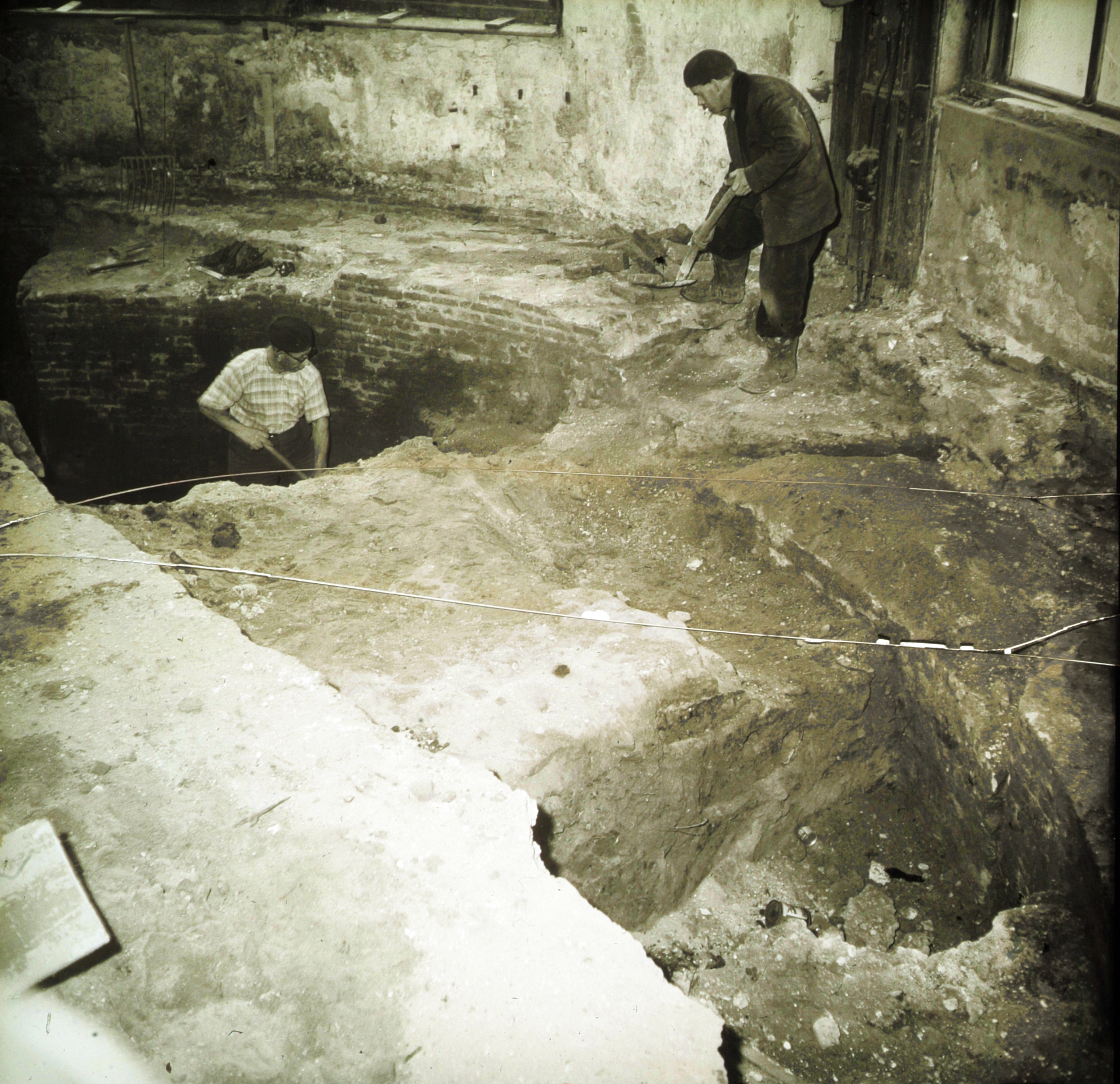 Vakmensen aan het werk tijdens de restauratie in het rondeel Engelenburg.