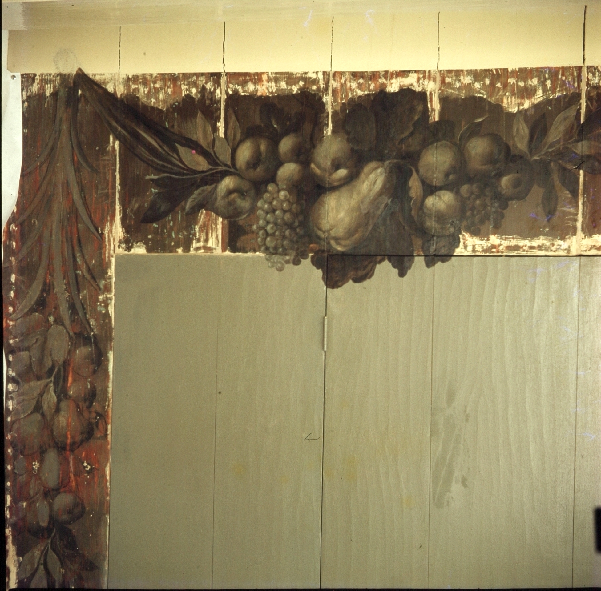 Muurschildering die is aangetroffen in een huis aan de Korte Engelenburgerkade.