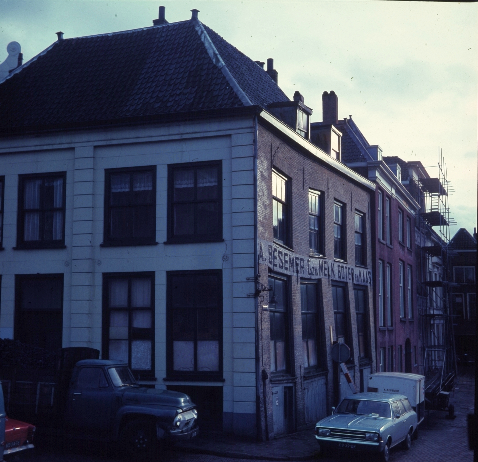 - Het vervallen pand van Besemer Melk, Kaas en Boter aan de Bomkade.