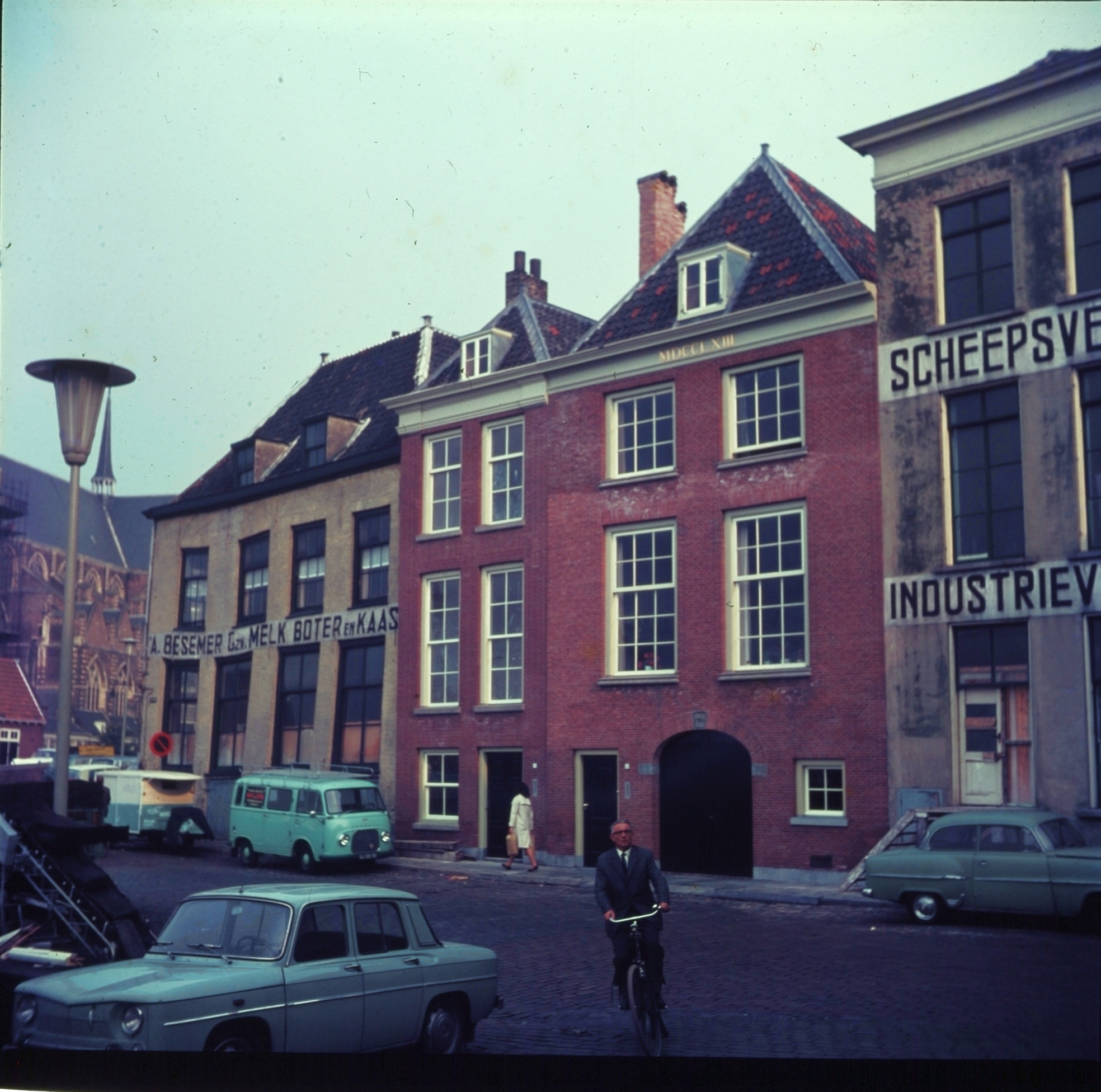 De Bomkade, twee panden van de Derks verffabriek zijn gerestaureerd, daarnaast Besemer …