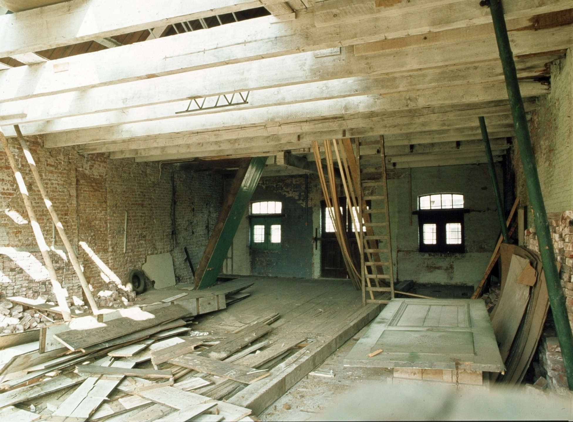 - Interieur van een pakhuis aan de Kuipershaven; het plafond wordt verlaagd.
