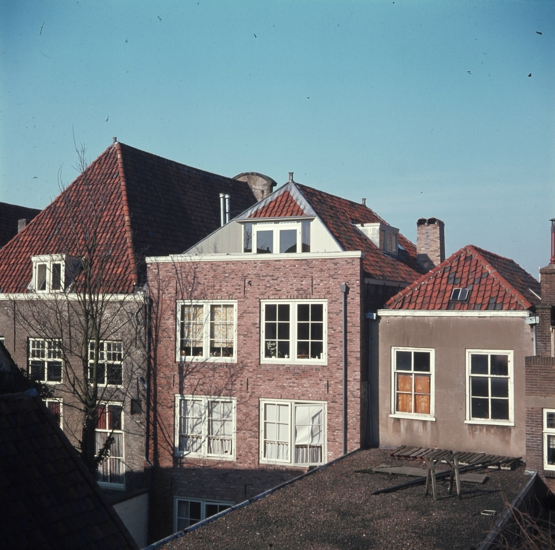 - De achterkant van een pakhuis aan de Kuipershaven na de restauratie.