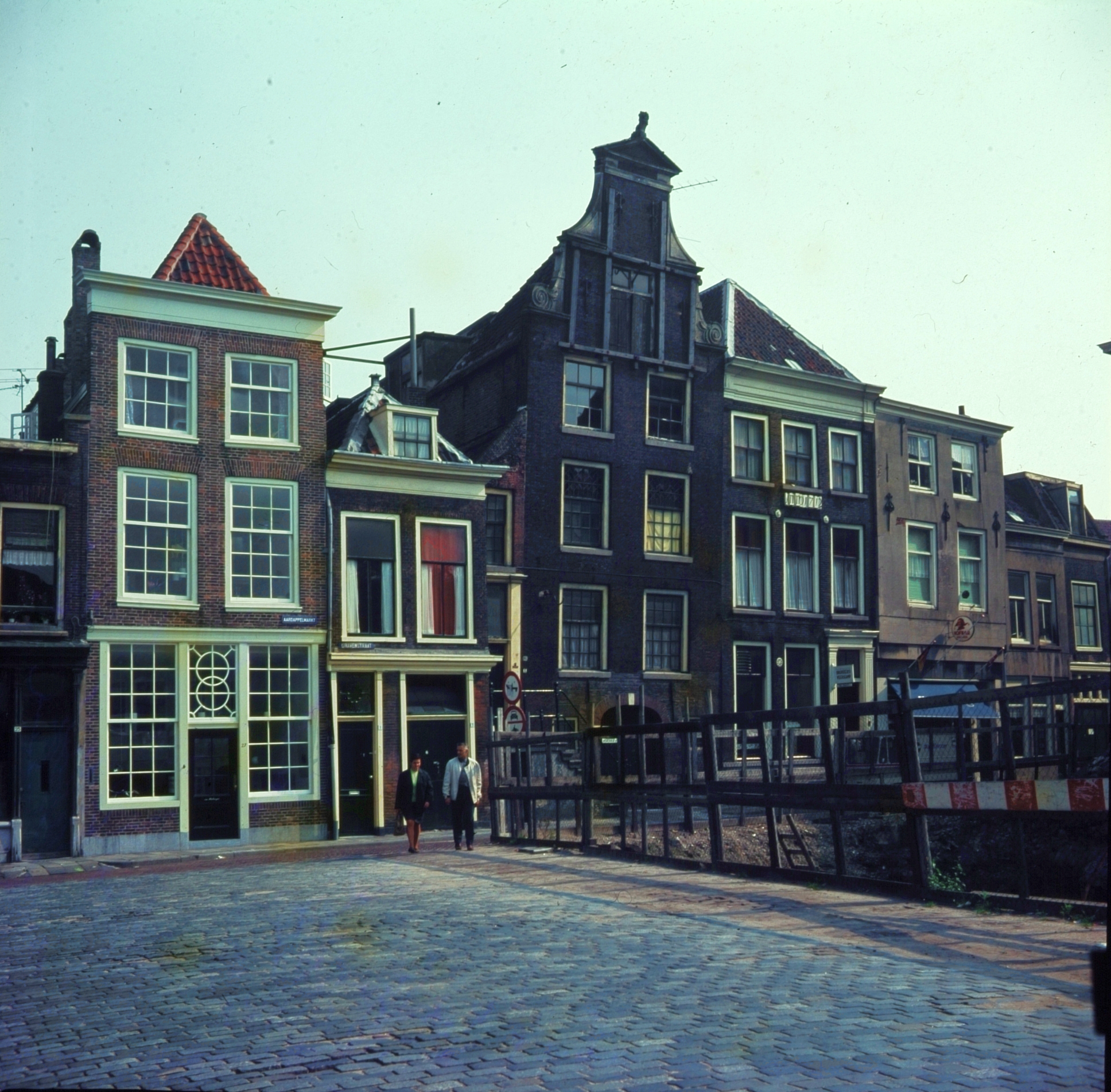 - De huizen aan de Aardappelmarkt, centraal een gerestaureerd pand, rechts begint de Gravenstraat en geheel rechts is het hoekpand afgebroken.