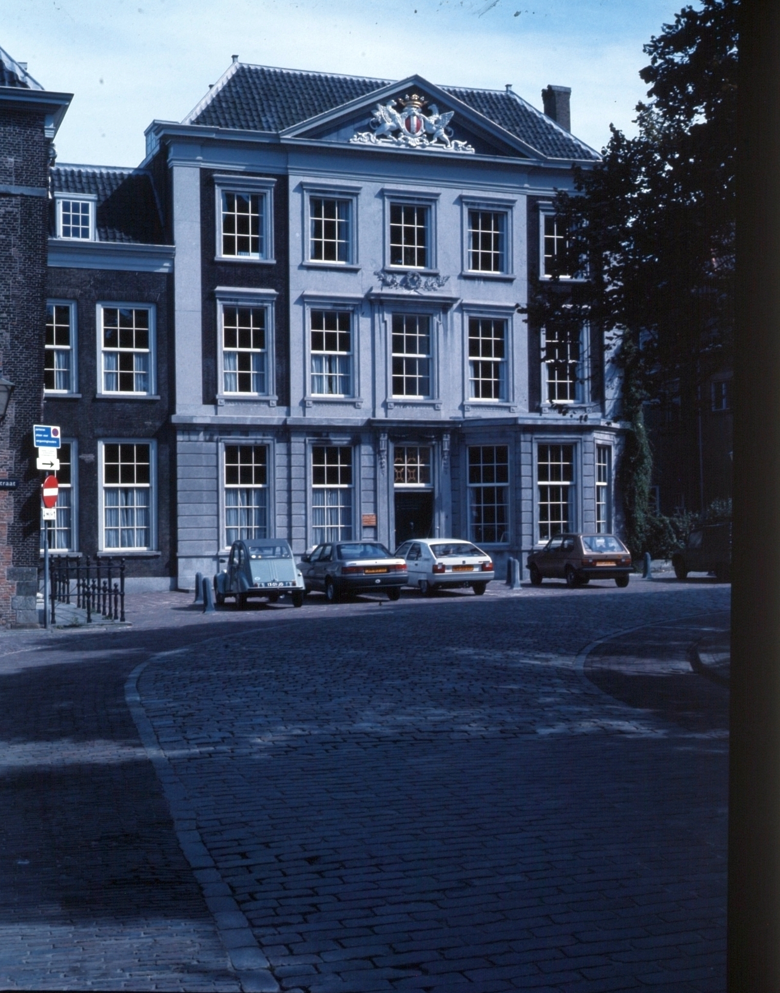 Monumentaal herenhuis aan het Grotekerksplein, geheel links de Kerkstraat.