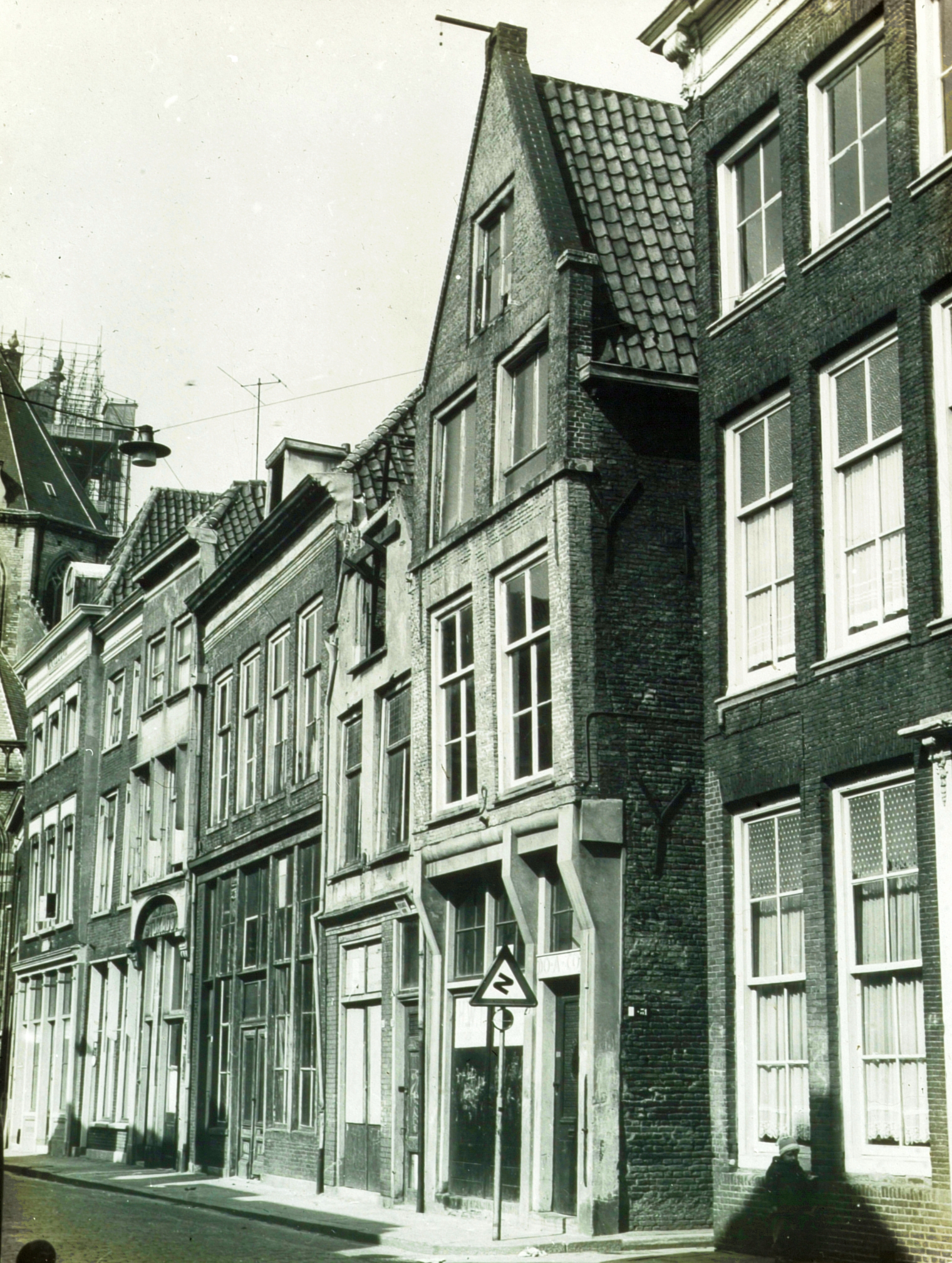 De huizen links in de Grotekerksbuurt gezien richting de Grote Kerk.