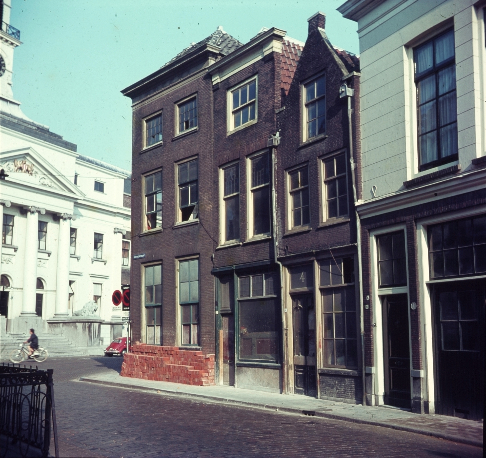 De kruising Grotekerksbuurt/Stadhuisplein met de vervallen panden op de hoek, die later gerestaureerd zijn.