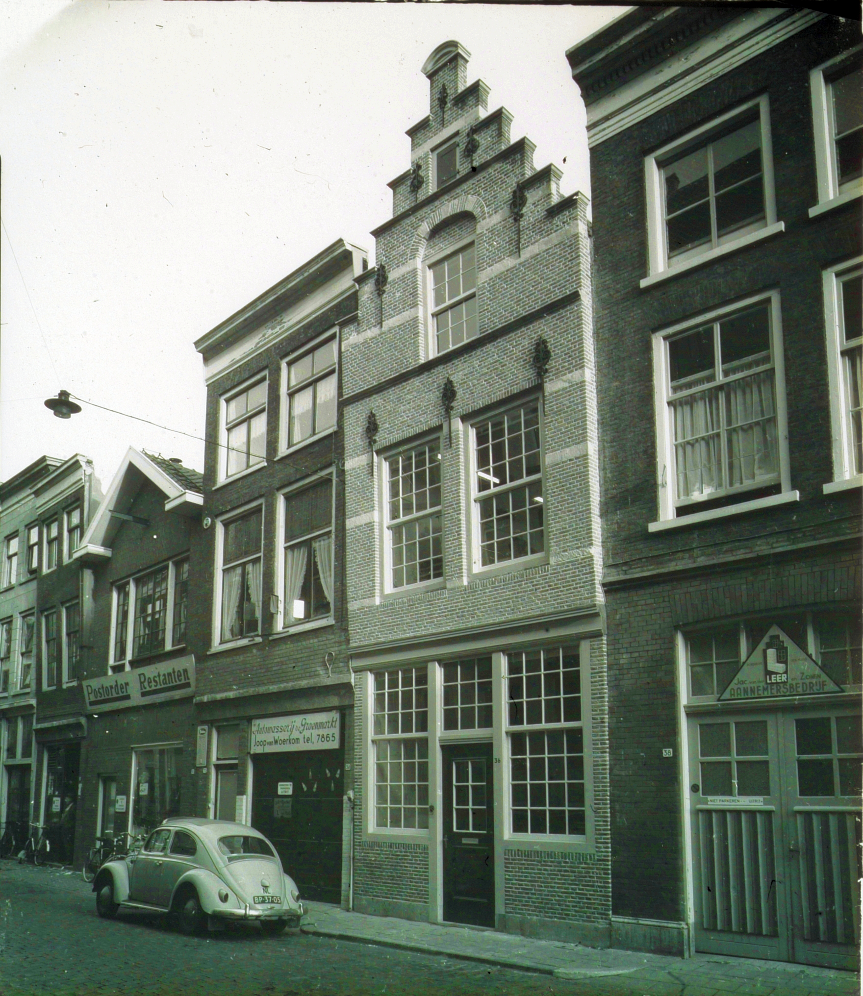 De Groenmarkt met links naast het huis met de trapgevel de autowasserij van Joop van …