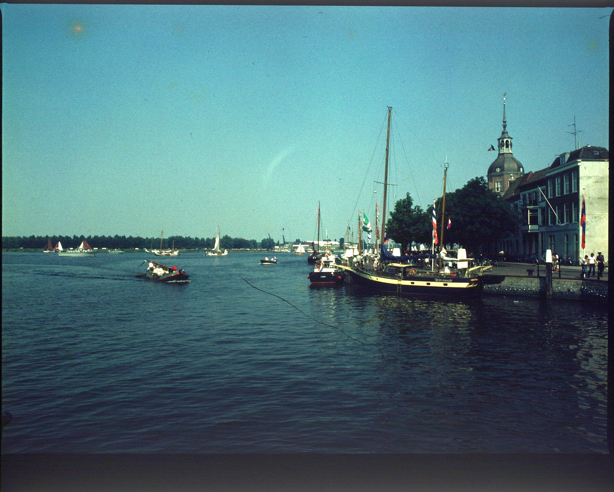 Rechts schepen aan de kade van het Groothoofd, links de rivier de Oude Maas en de kruising met de rivier de Noord en het Wantij.