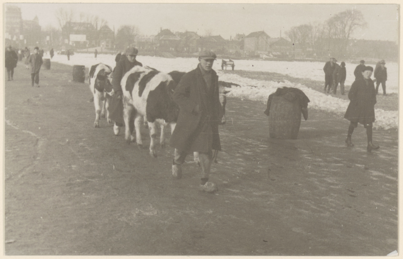 boeren / boerinnen ijsgang koeien voetgangers winter