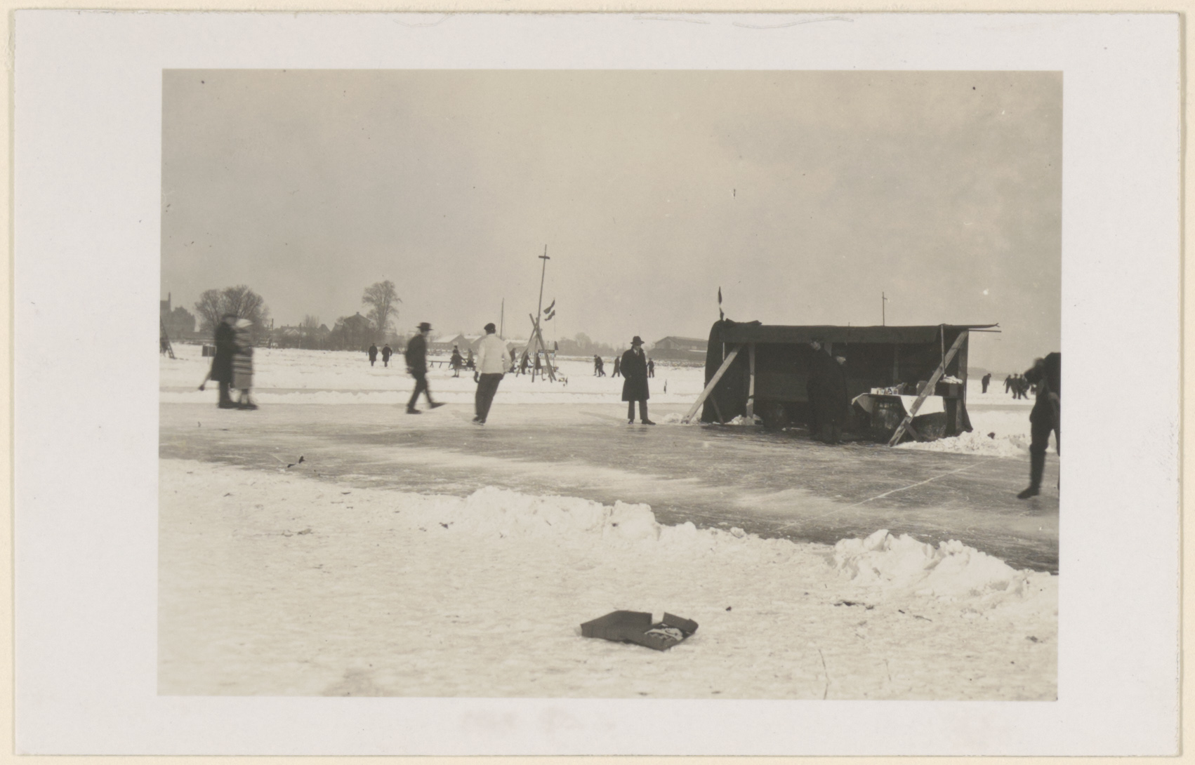 De strenge winter van 1928/1929. IJsbaan op de bevroren Merwede bij Papendrecht even …