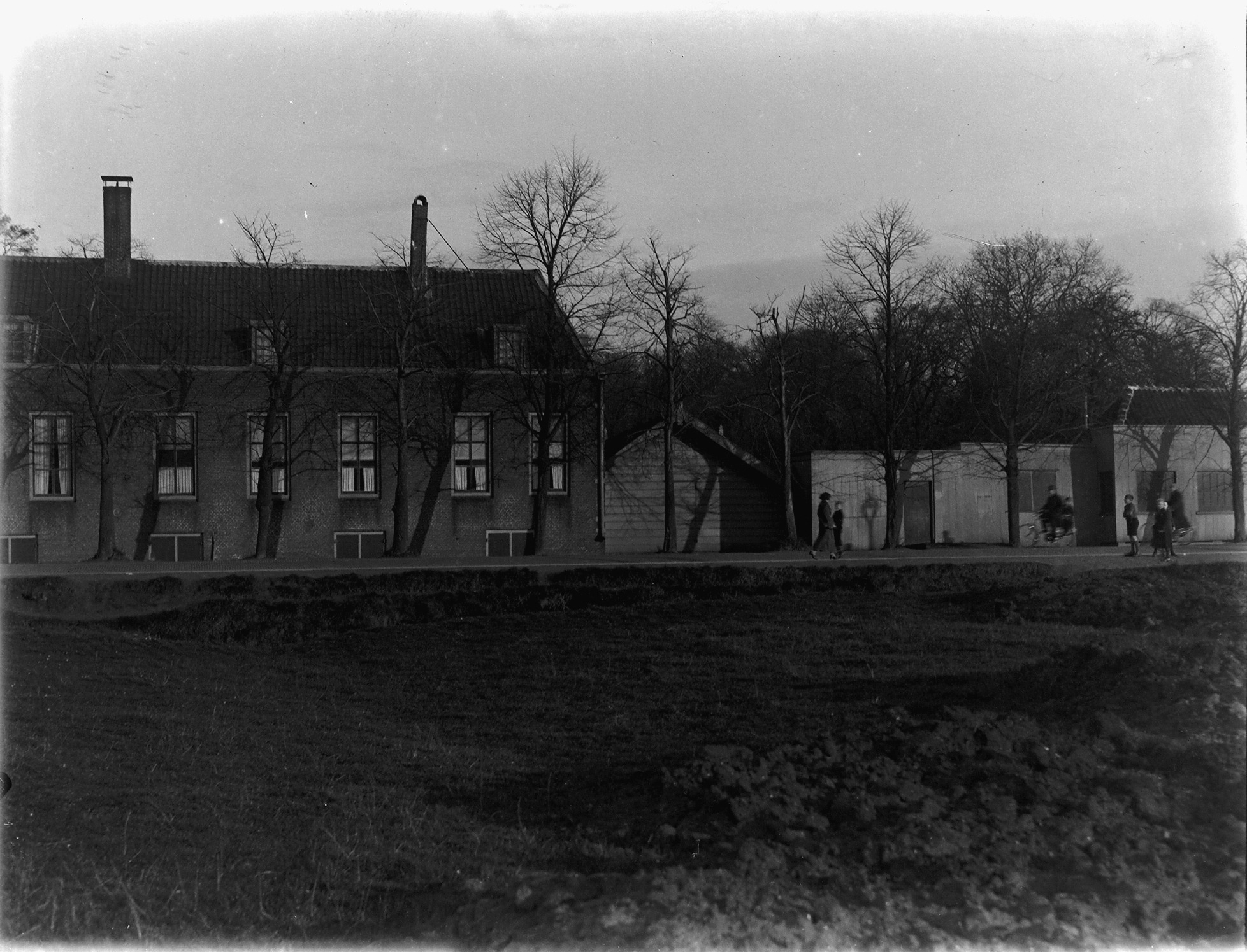 - Bebouwing naast het koetshuis (in zuidelijke richting) bij landgoed Weizigt aan de Krispijnseweg, gezien vanuit de wei van De Roo.