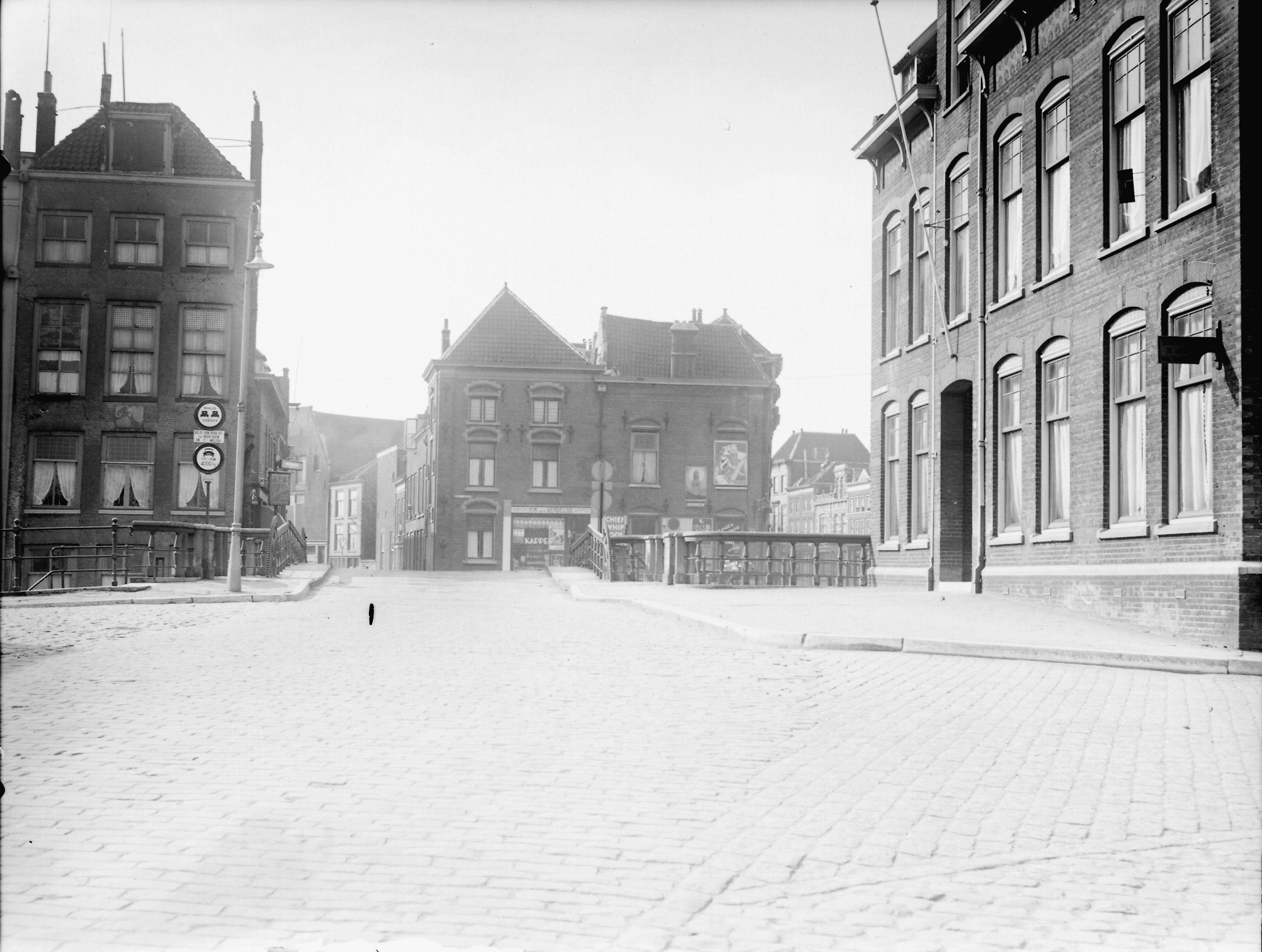 De Leuvebrug vanaf Korte Geldersekade naar het zuiden, richting Voorstraat (panden …