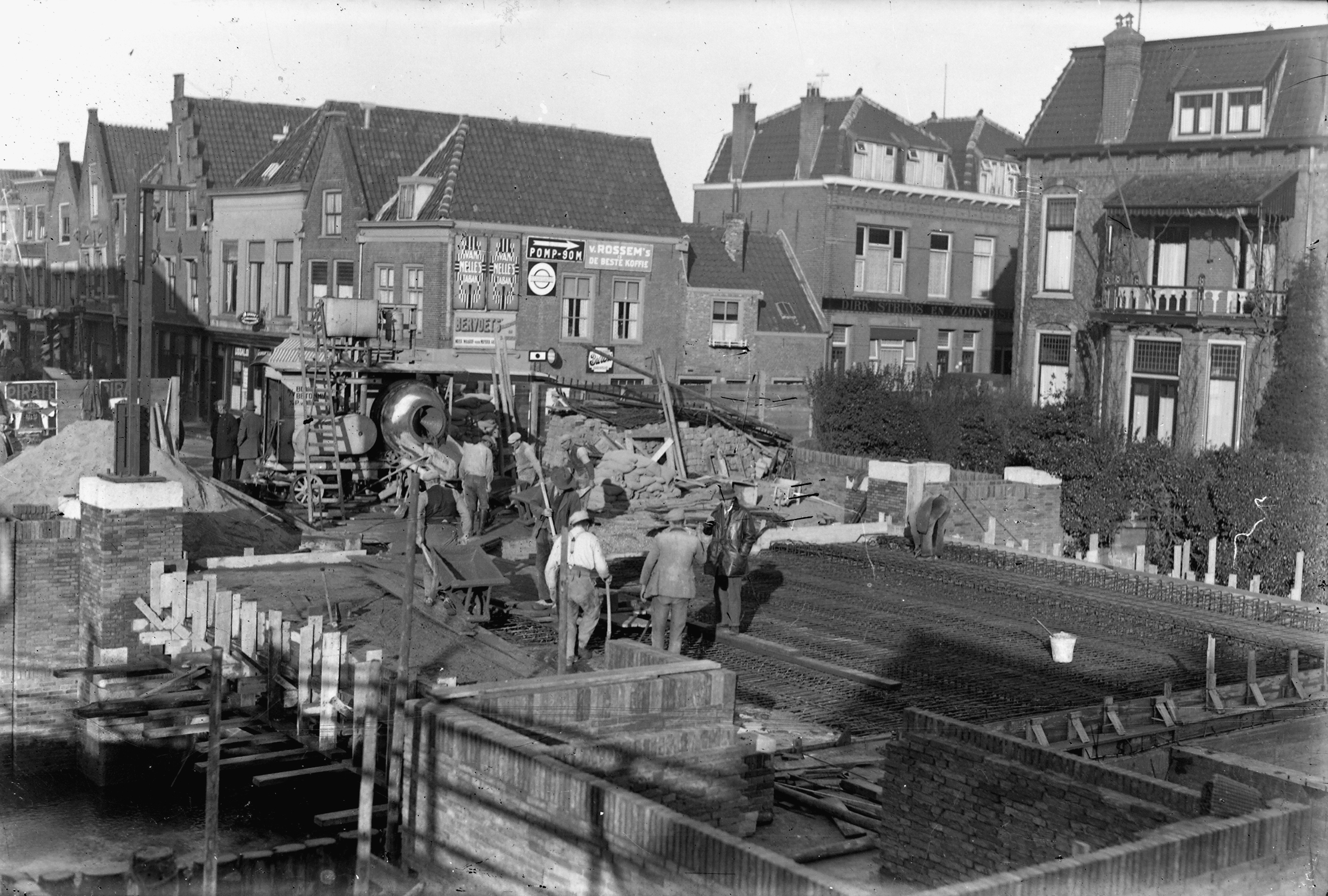 Vernieuwing van de Vriesebrug over de Spuihaven vanaf het Vrieseplein richting Vriesestraat en Vest gezien.