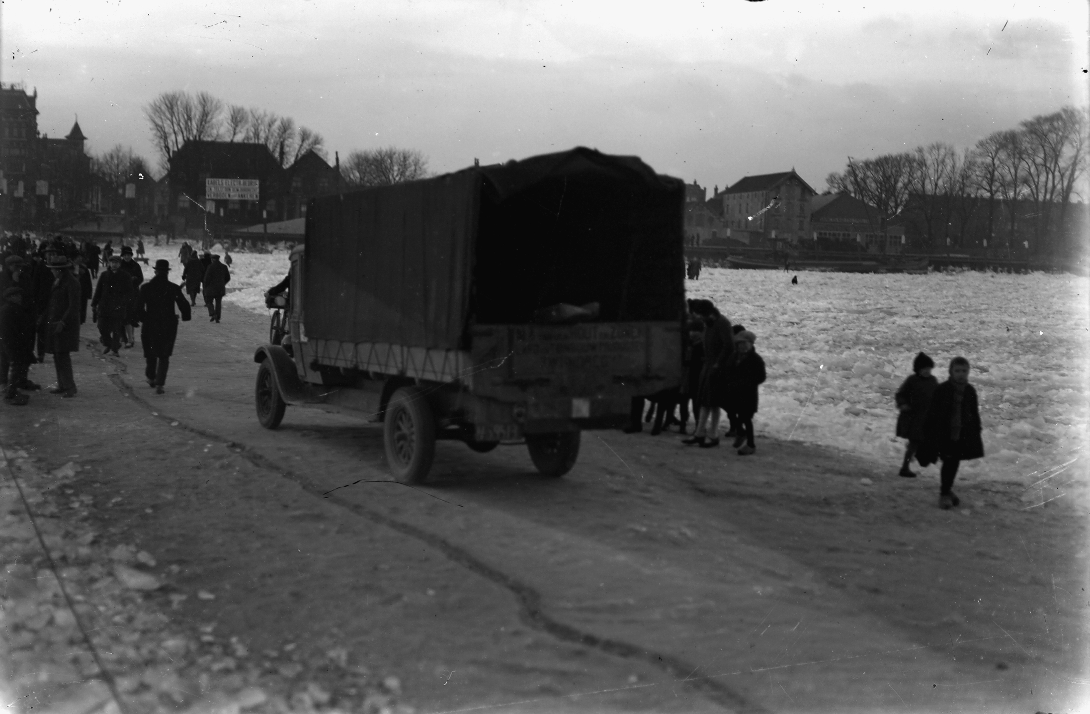 - ijsgang reizigers voetgangers vrachtwagens winter