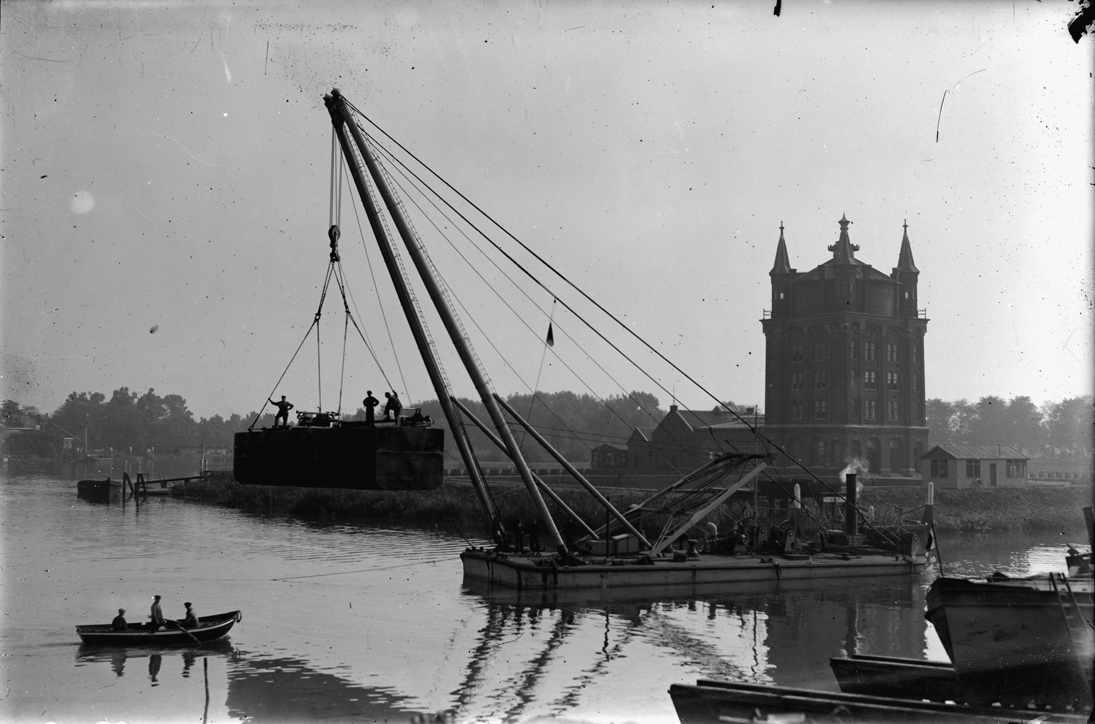 - Een drijvende bok op het Wantij. Op de achtergrond is de Noordendijk, het gebouw is de watertoren.