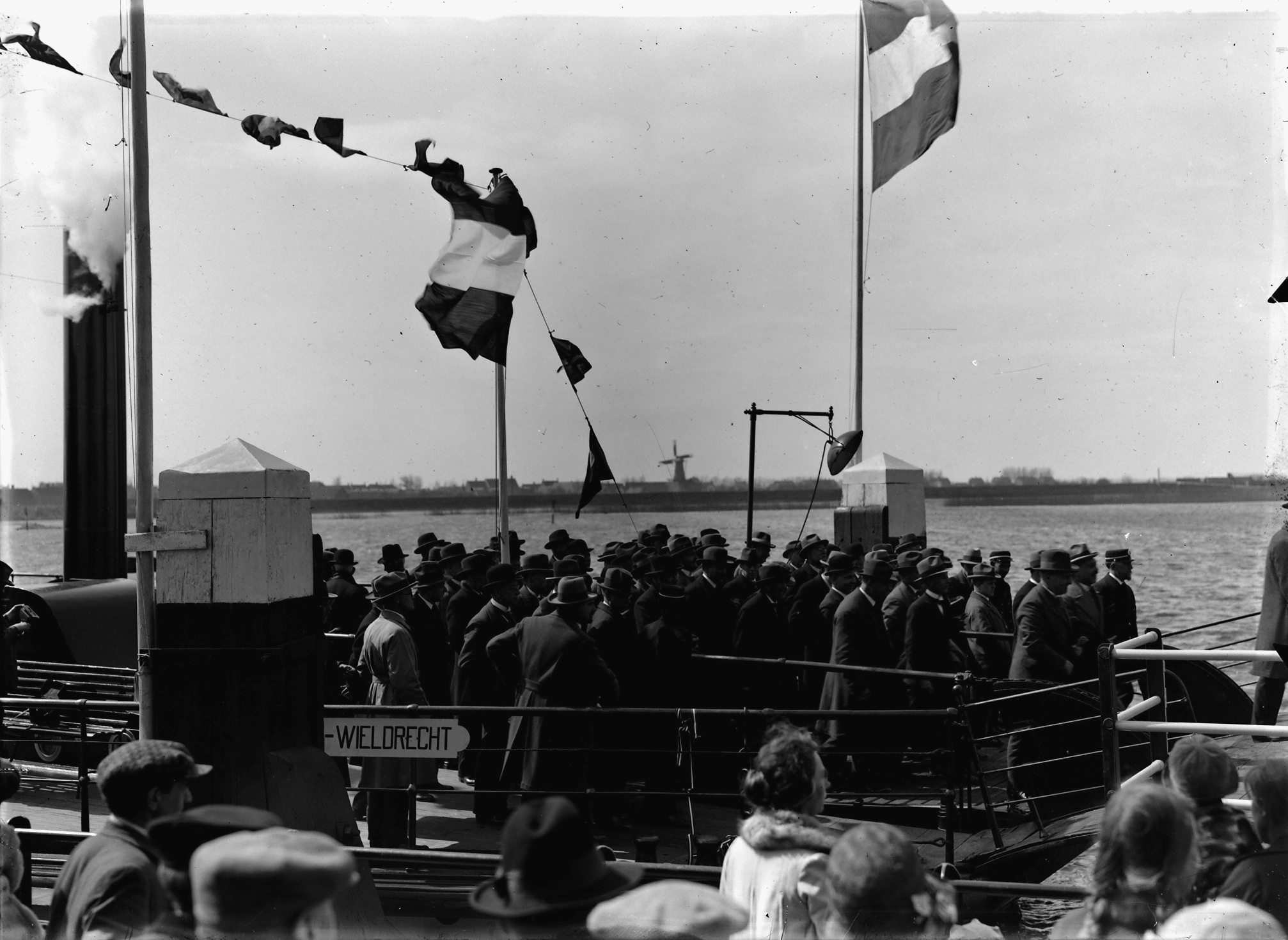 - Genodigden bij de opening van het veer bij Wieldrecht over de Dordtsche Kil naar 's-Gravendeel.