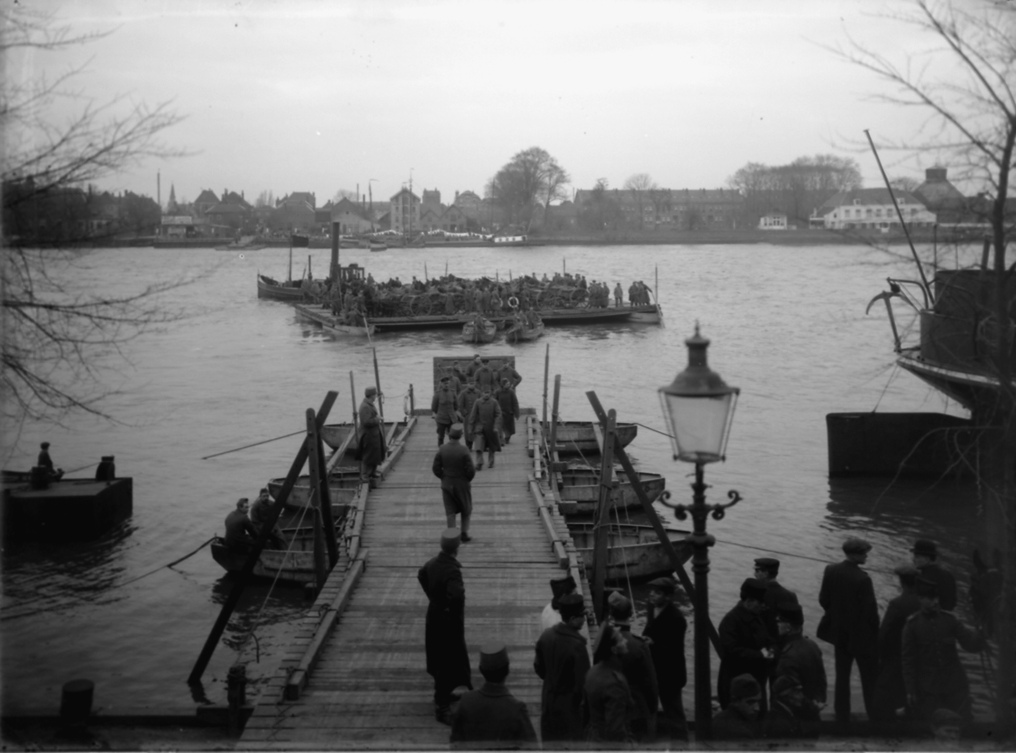 - Pontonniers slaan en brug over de Oude Maas van Dordrecht naar Zwijndrecht.