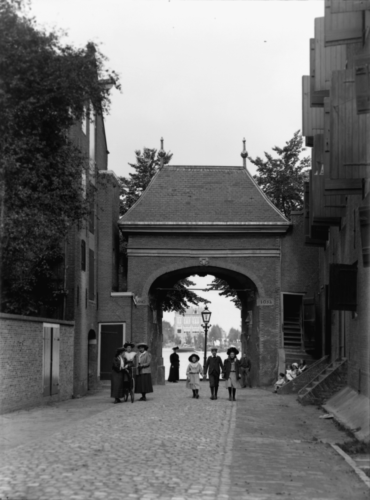 Korte Engelenburgerkade met zicht door de Catrijnepoort over de Oude Maas op hotel het …