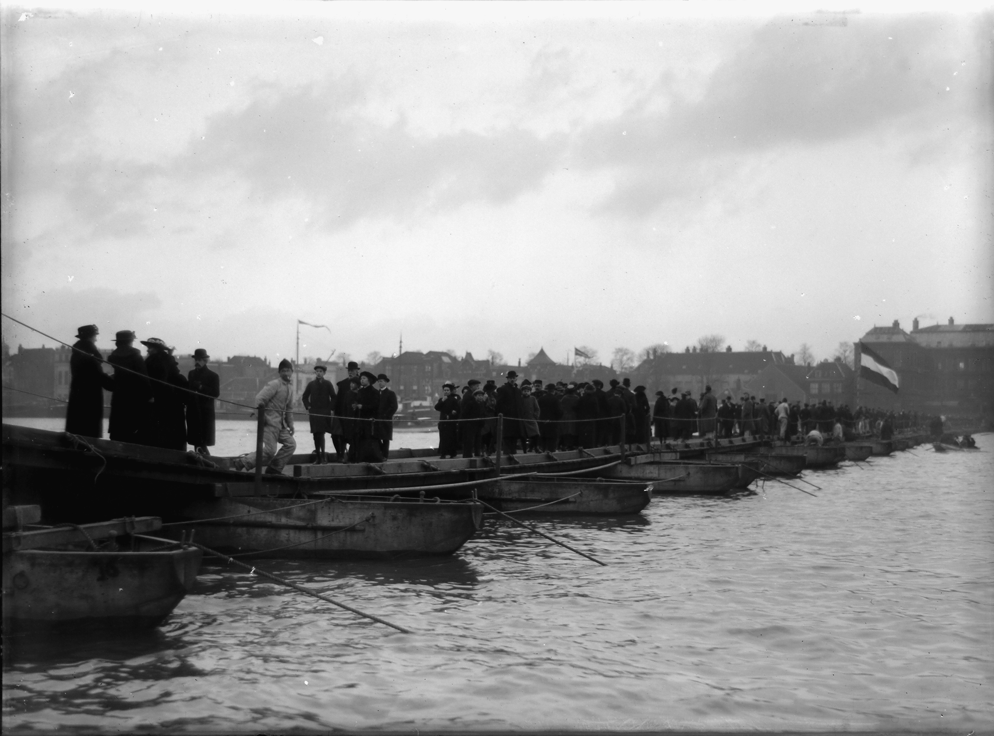 Een door pontonniers geslagen brug van Zwijndrecht naar de Dordtse oever bij de …