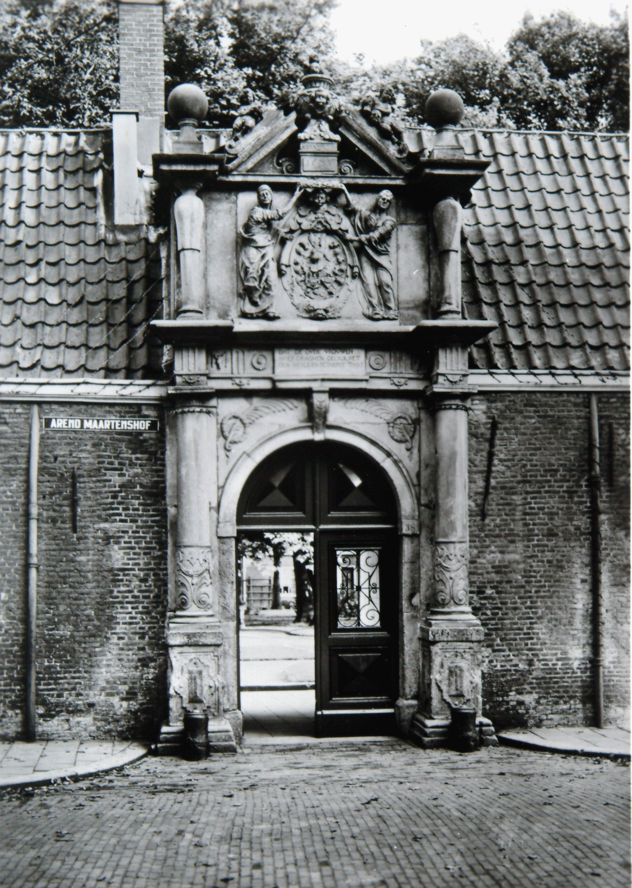 - Toegangspoort van de Arend Maartenshof in de Museumstraat. De poortdeuren werden iedere avond op slot gedaan.