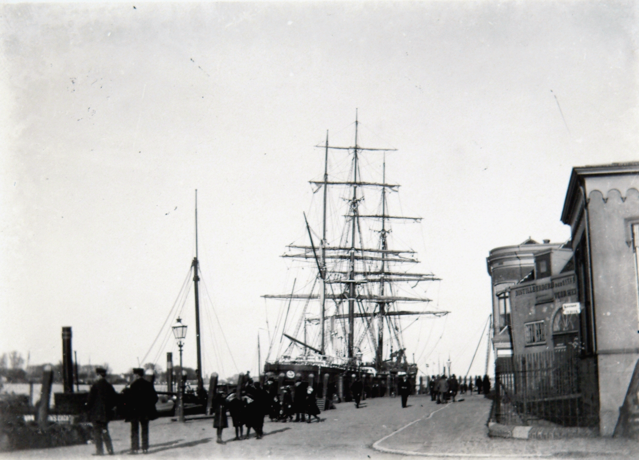 driemasters lantaarns / straatverlichting publiek / toeschouwers stoomsleepboten zeilvaartuigen