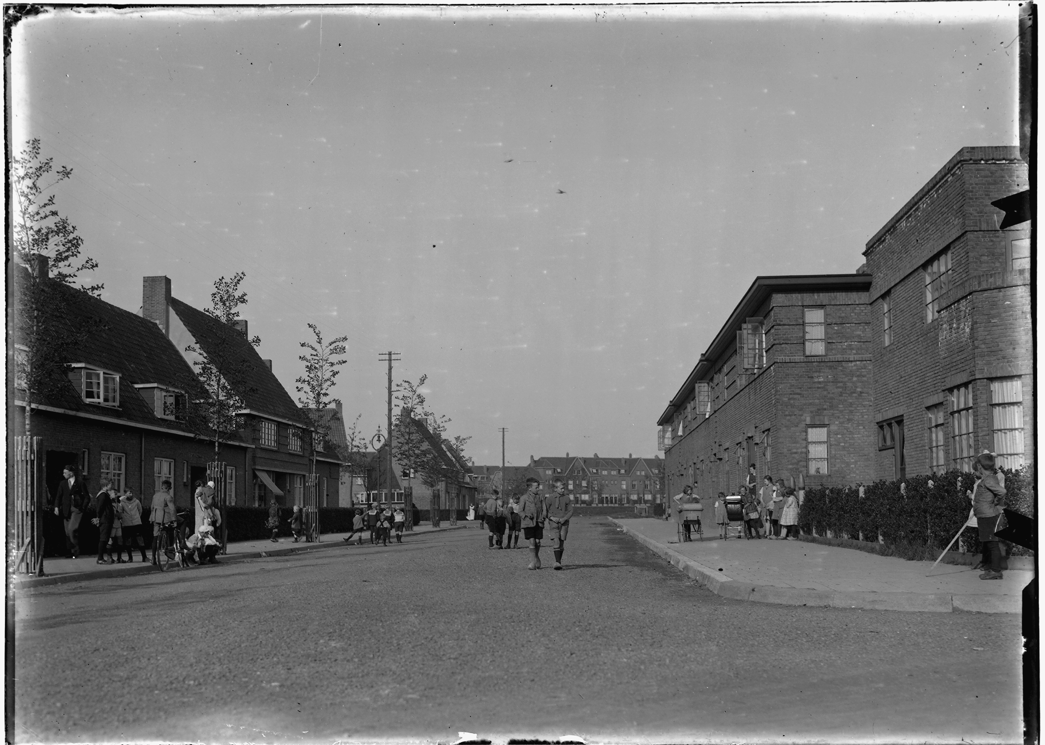 Normaal gesproken had je dit uitzicht op de Brouwersdijk niet kunnen hebben vanaf dit punt. De Willem Marisstraat is nog niet gereed tot aan de Brouwersdijk. De knik die er ter hoogte van de Josselin de Jongstraat nog in moet komen, zal dat later voorkomen. Dan zou je ook vanaf de Josselin de Jongstraat recht de H.F. Tollenstraat in hebben gekeken i.p.v. zo pontificaal op de huizen aan de Brouwersdijk.