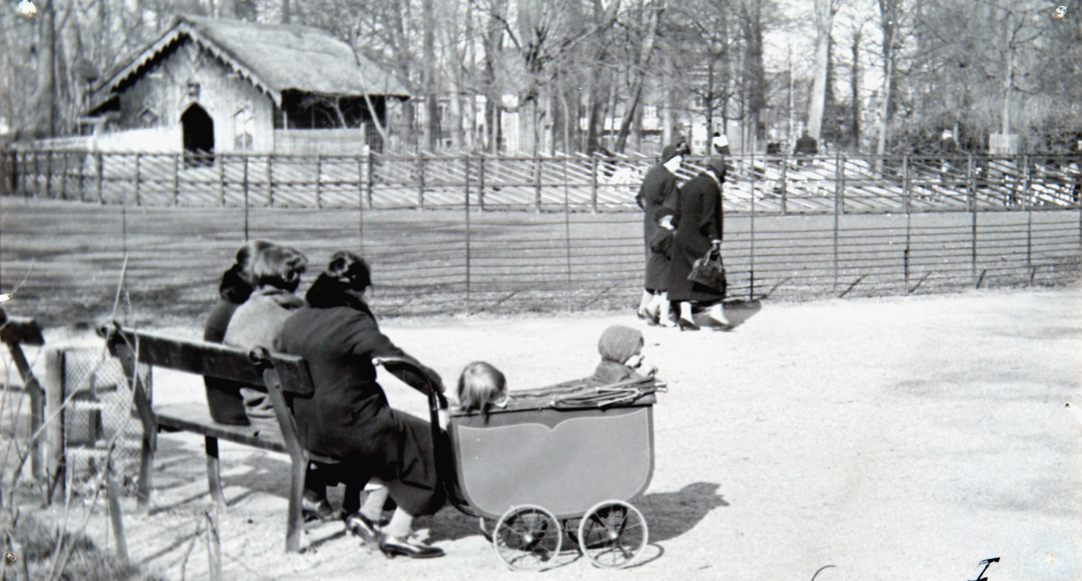 - herten / hertenkampen kinderwagens parken sneeuw voetgangers winter zitbanken