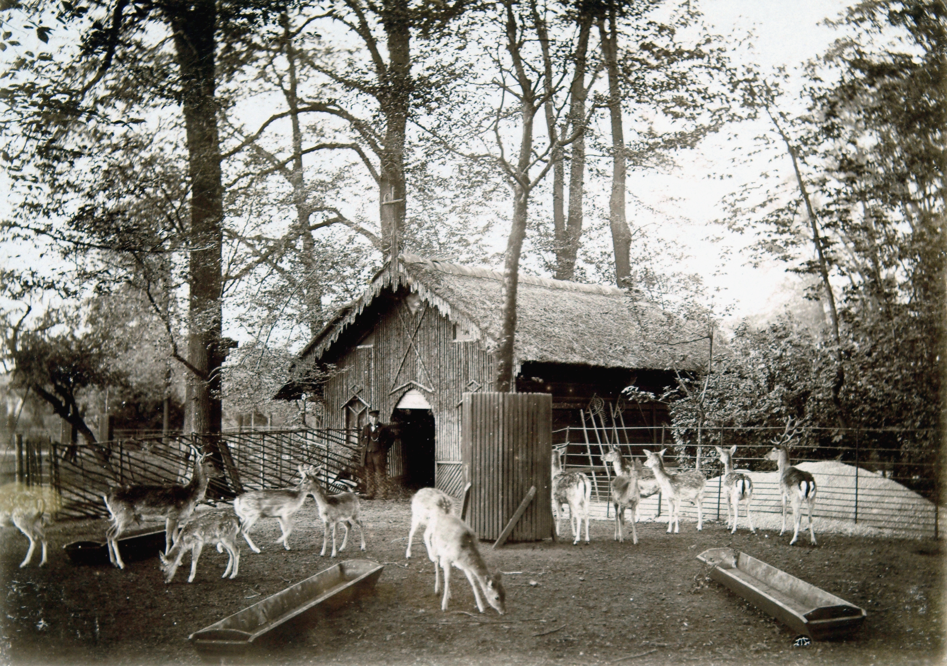 De verzorger bij het nachtverblijf van het hertenkamp in Park Merwestein.