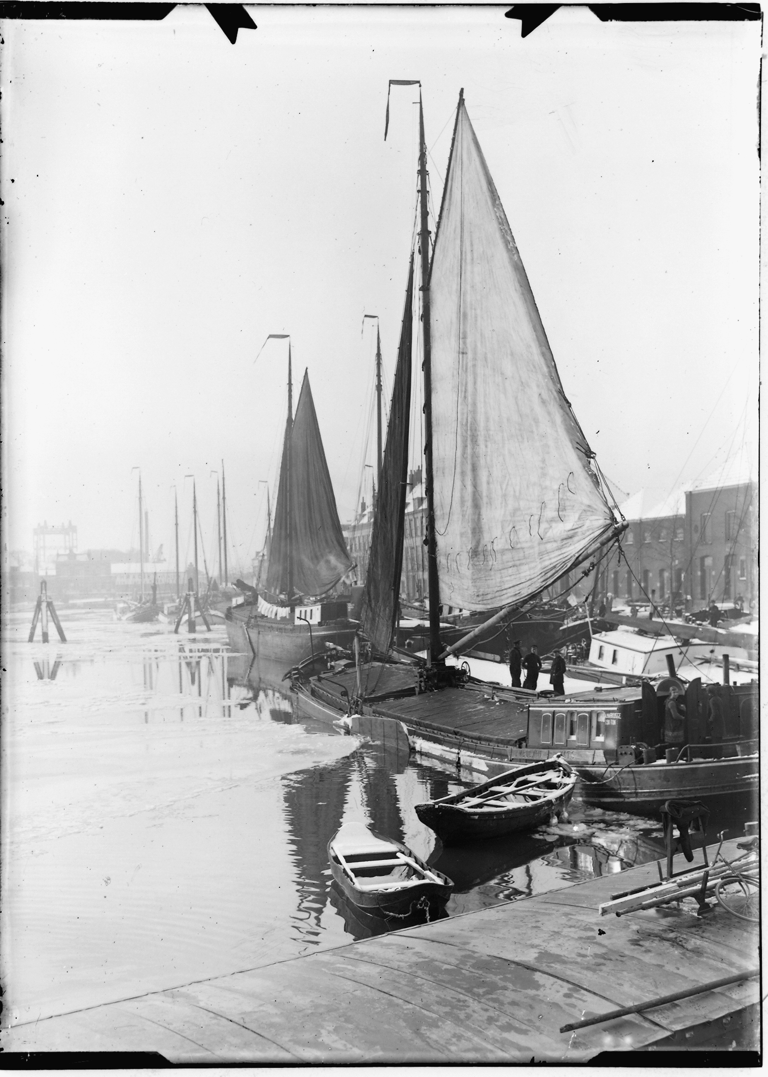 - bruggen dukdalven / meerpalen havens ijsgang roeiboten vrachtboten zeilvaartuigen