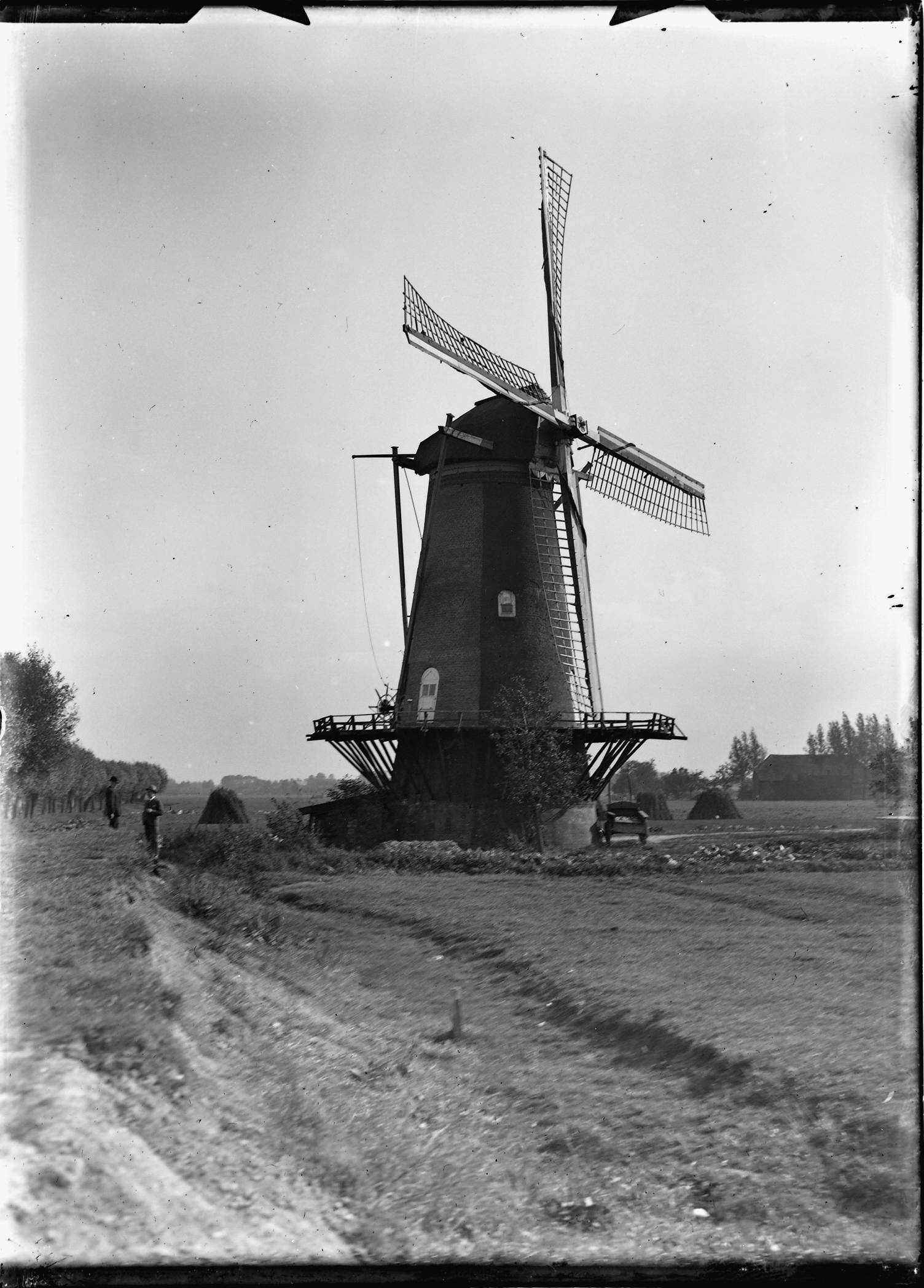Korenmolen Willem II aan de Krommedijk nabij de latere Vorensaterstraat, gezien in de …
