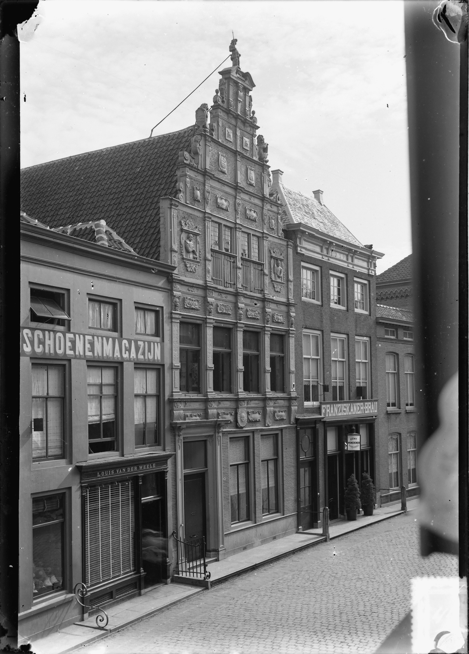 * Franziskaner-Brau http://www.middelburgdronk.nl/wiki/Bestand:Franziskaner_Brau_naast_De_Gouden_Zon.JPG * Louis van der Weele (schoenenmagazijn) Dames-Modezaak. Ter overname aangeboden de van ouds bekende DAMESMODEZAAK in Handschoenen, Hoeden, Voiles, Barrets enz., „De Ooievaar", te Middelburg. Cond. overname v/d geheelen winkelopstand voor / 2000 en huurprijs van den winkel met woning a ƒ5OO per j. Nadere inlichtingen geeft de eigenaar LOUIS VAN DER WEELE. [Het nieuws van den dag : kleine courant 18-01-1906]