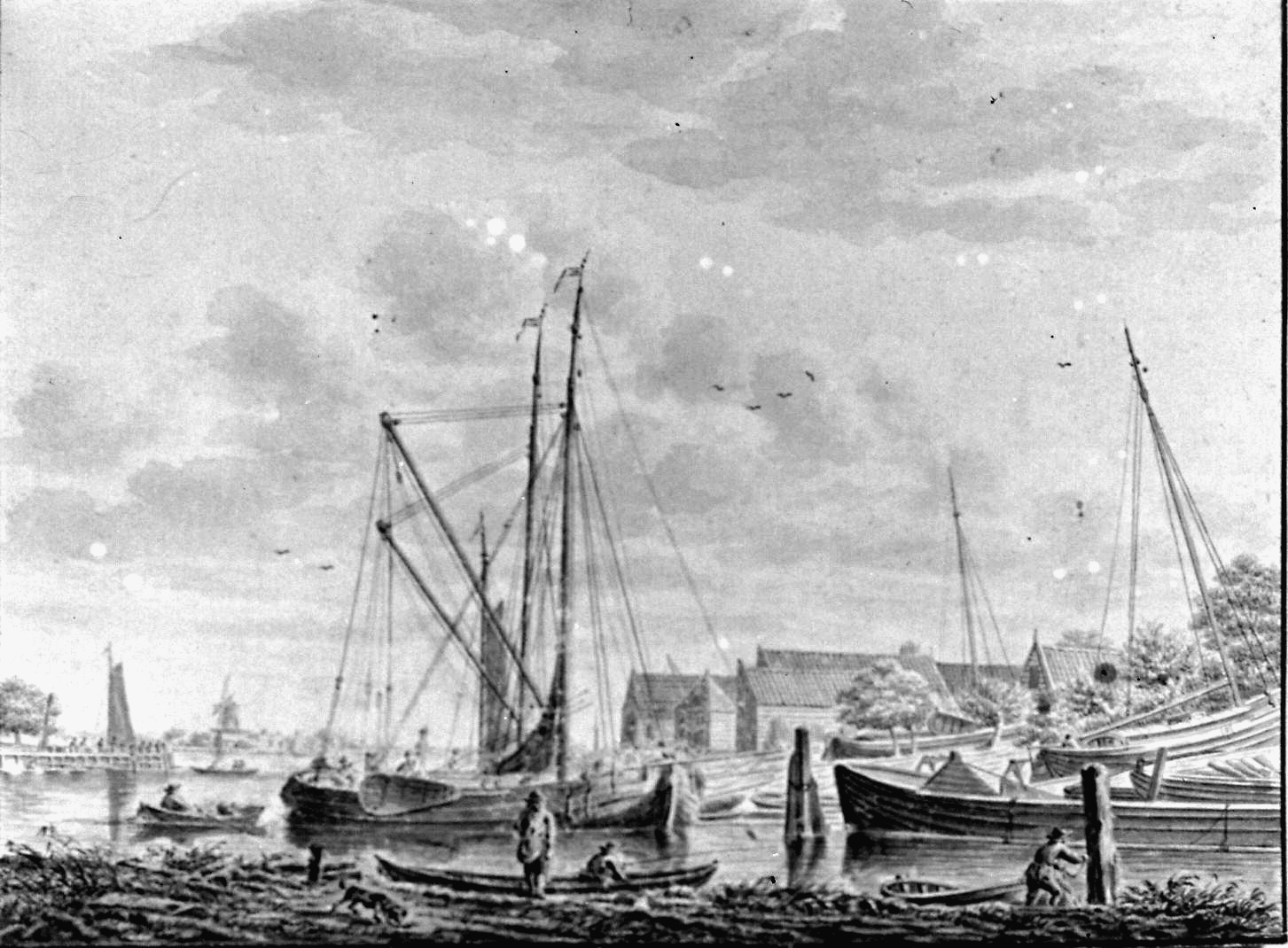 - havens molens roeiboten tekeningen zeilvaartuigen