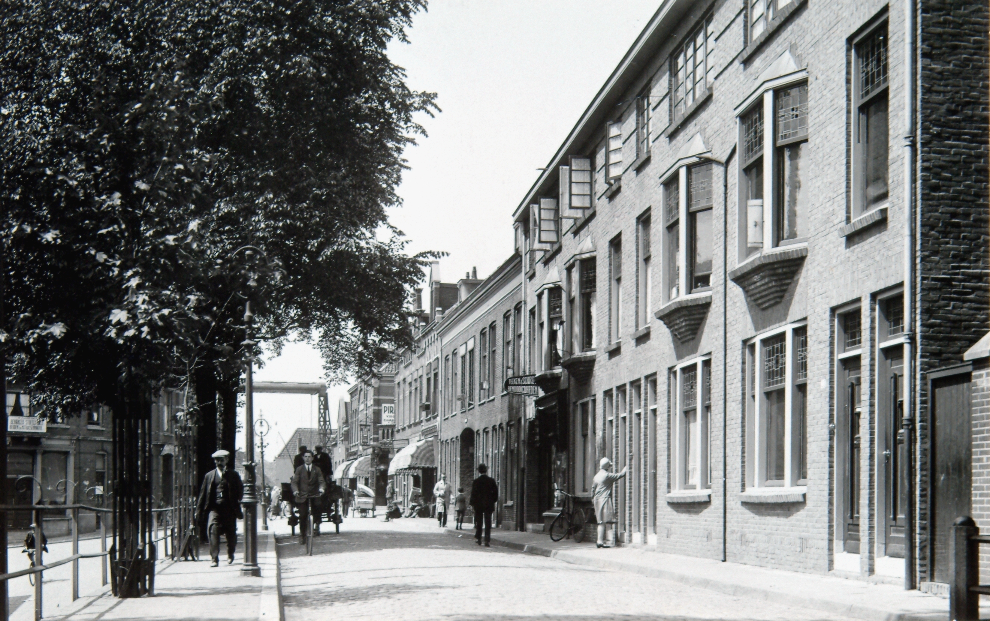 - De Noordendijk bij de kruising met het Kromhout (links) en de Noorderstraat (rechts tussen de zonnekappen). Onder de woning (links) met het bord behangerij en beddenmakerij van H.J. van Reenen was vroeger een postagentschap gevestigd. Rechts in het midden s een uithangbord van een winkel in teken- en schrijfbenodigdheden. Op de achtergrond de Noorderbrug.