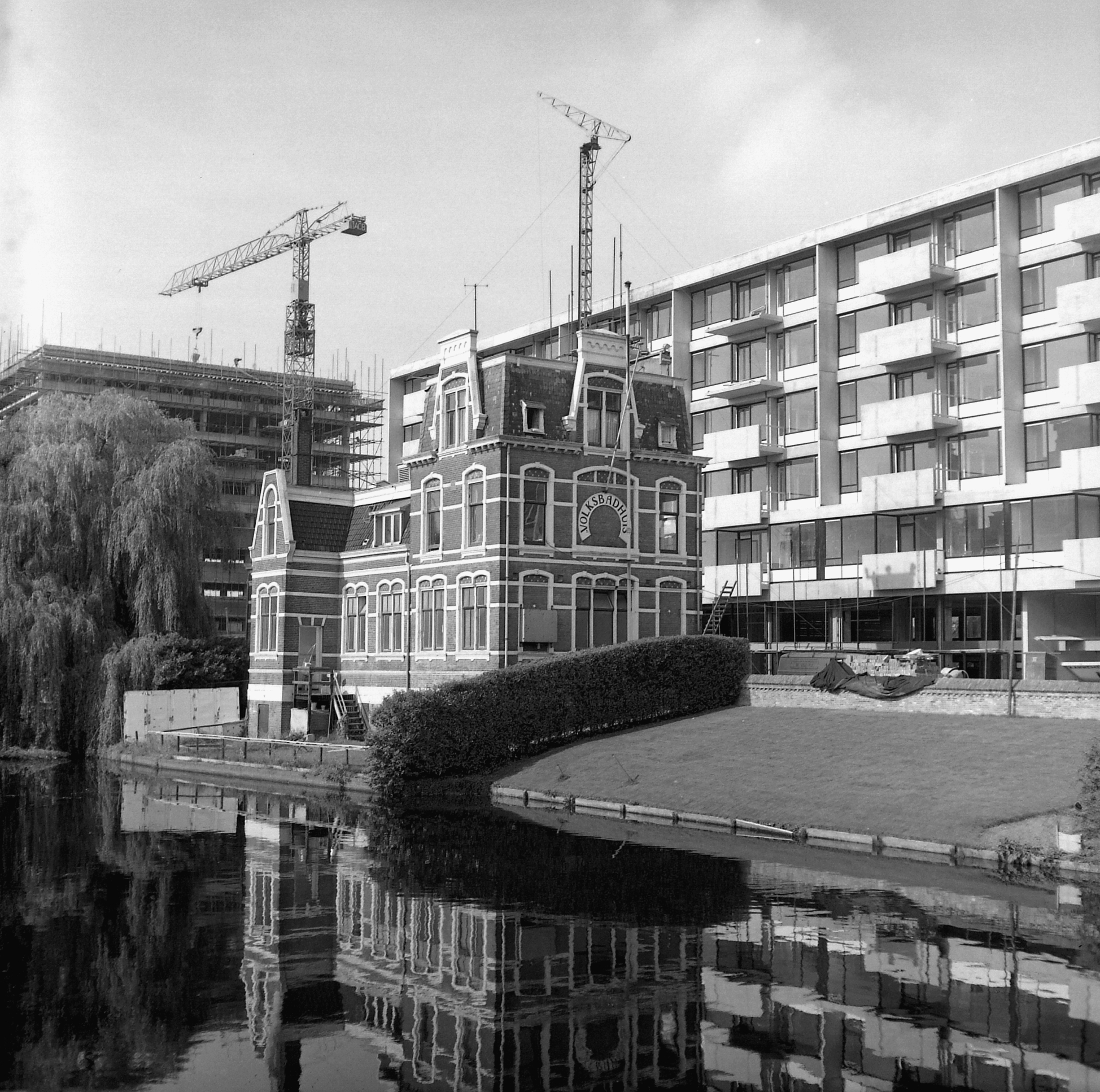 Het Volksbadhuis aan de Vest en Spuihaven. De nieuwbouw wordt de ABN en flats en gaat …