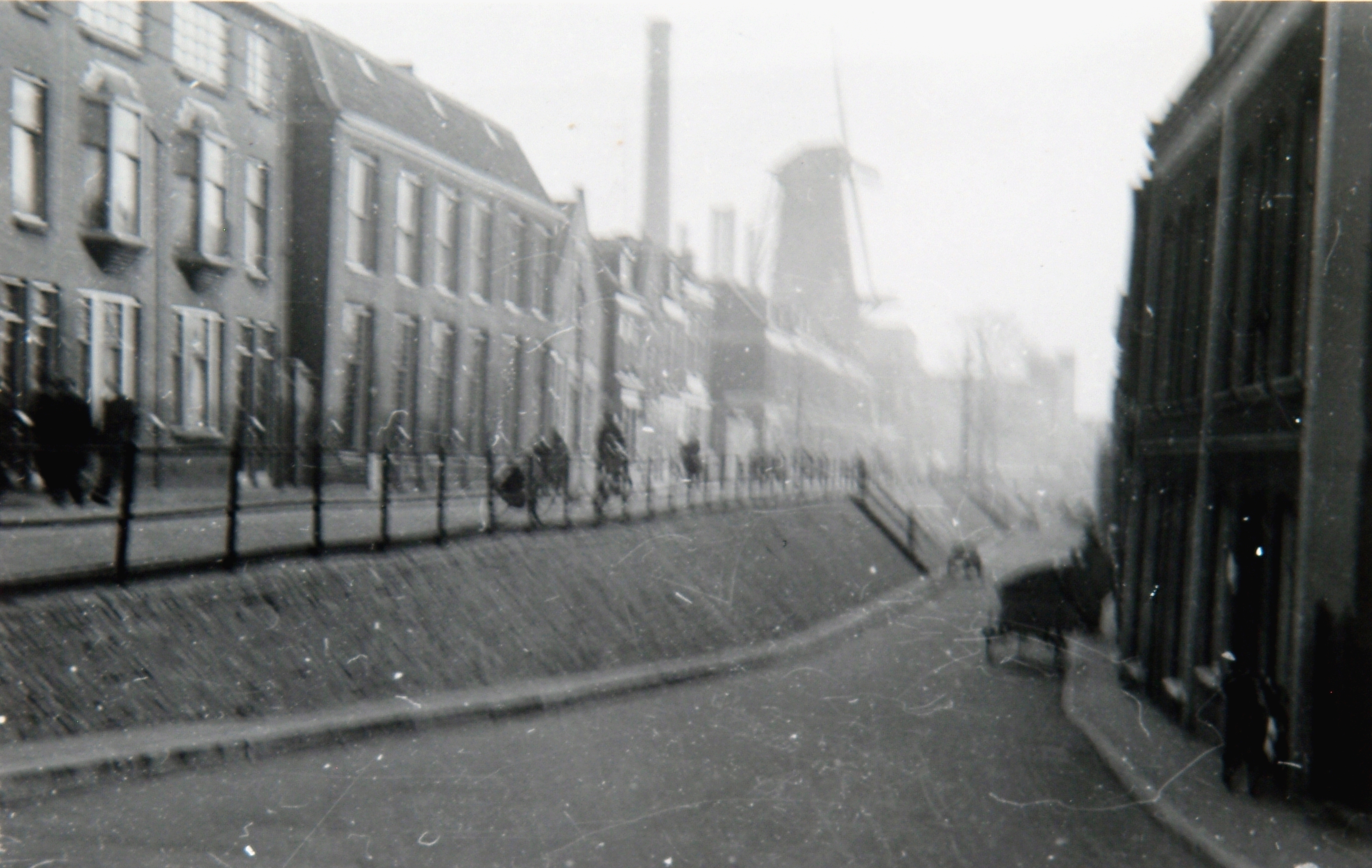 - De Noordendijk - die uit een boven- en een benedendijk bestaat - gezien vanaf kruispunt Kromhout. Zichtbaar zijn molen Kijck over den Dijck en de schoorsteen van de elektriciteitscentrale.
