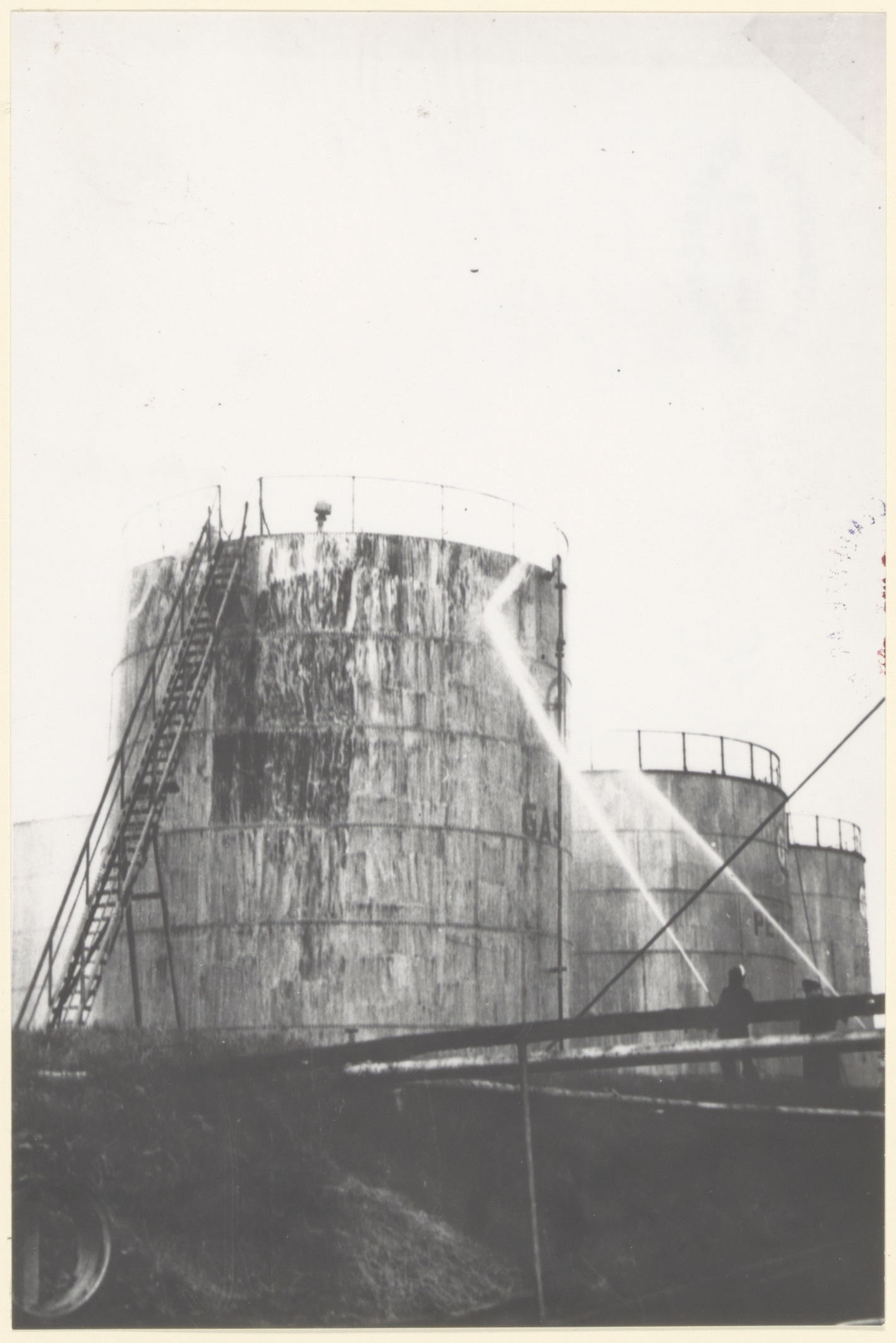 - De brandweer houdt olietanks nat na een explosie van één van de tanks op 16 oktober 1962 in het tankpark van de firma Broere aan de 's-Gravendeelsedijk. Tankparkwachter B. Sangers liet hierbij het leven.