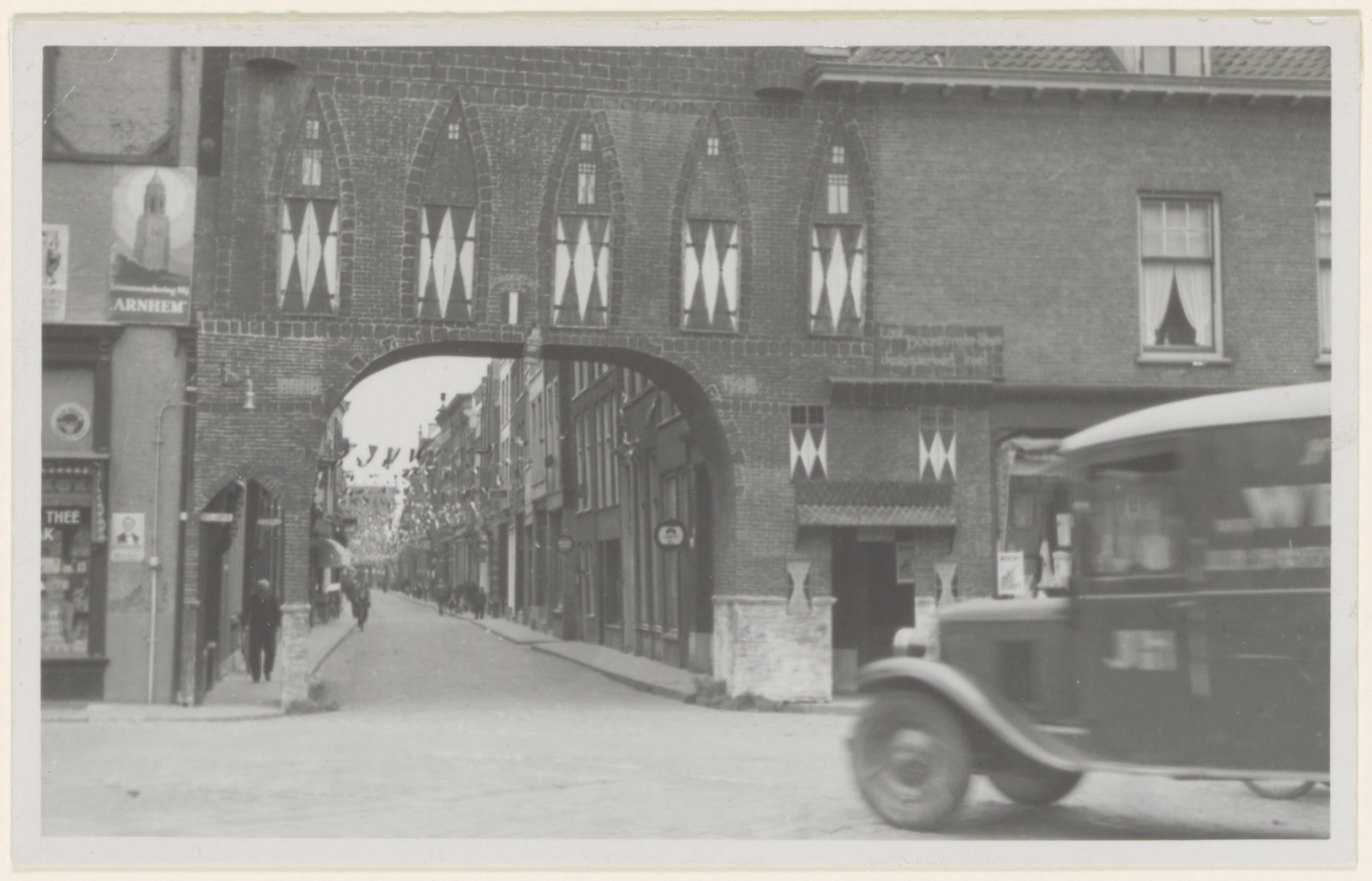 Reconstructie van de Vuilpoort aan de Voorstraat West tijdens de Winkelweek.