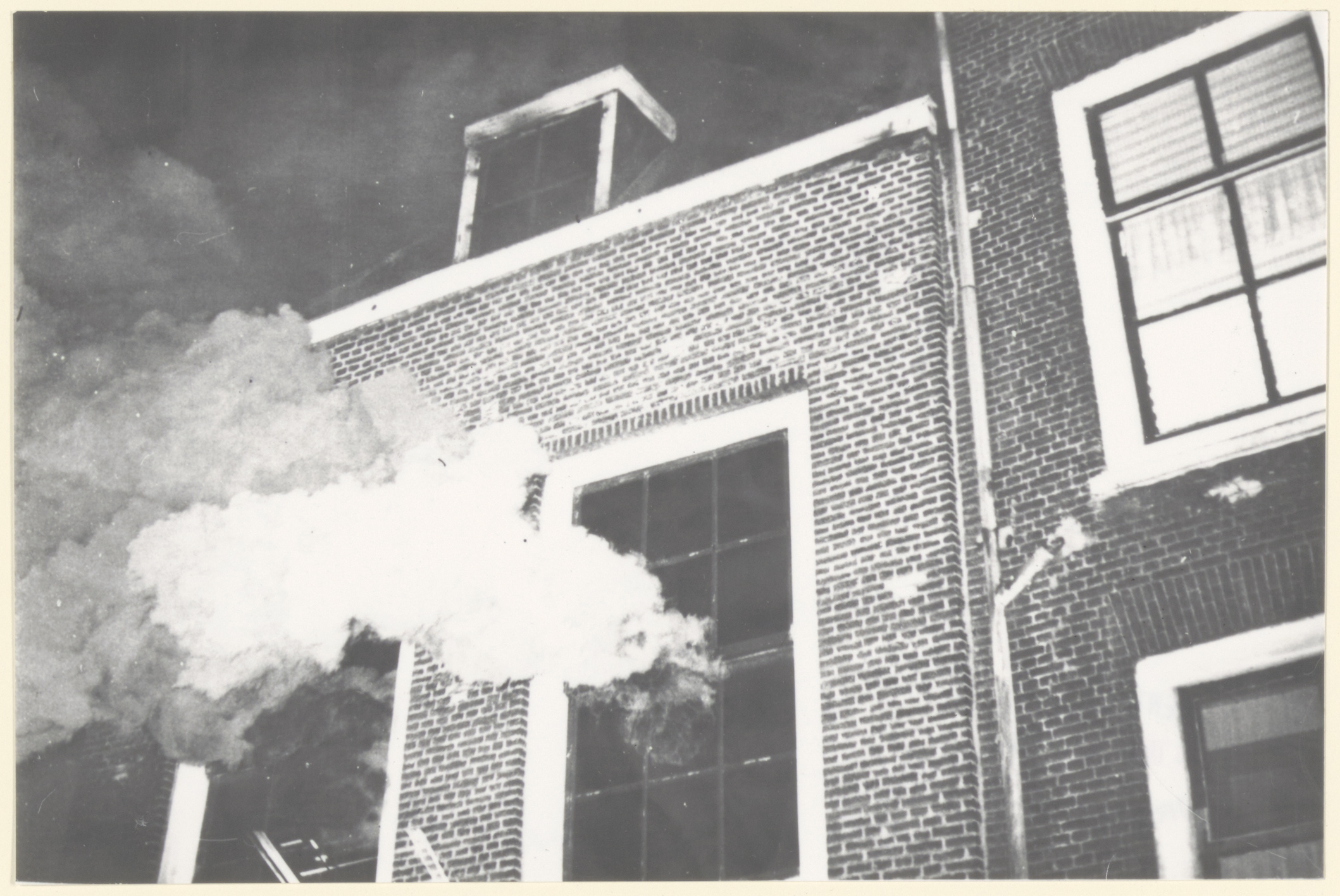 De achterzijde van het brandende pand van de handel in olie en vetten van A. Loggers …